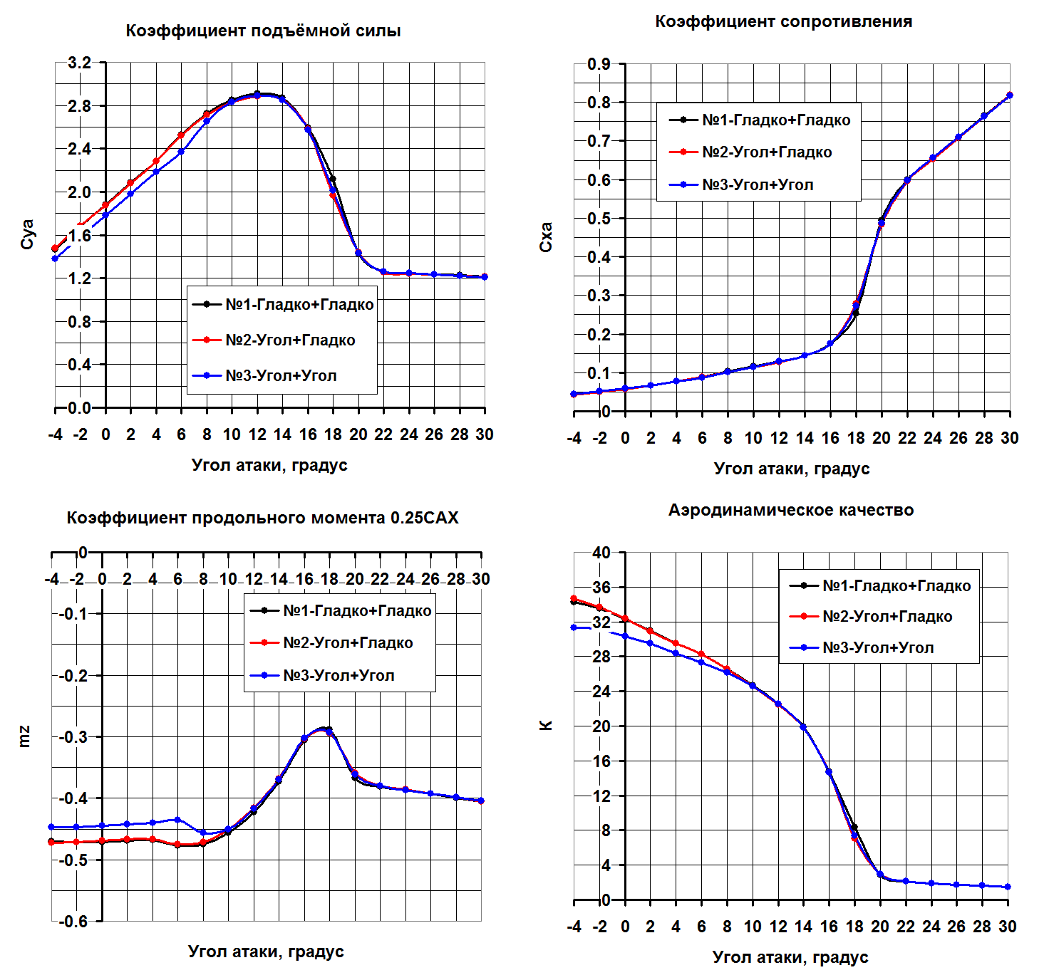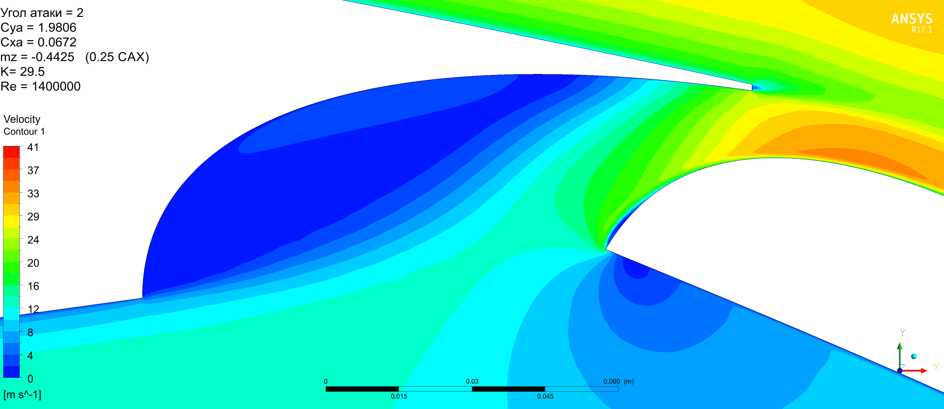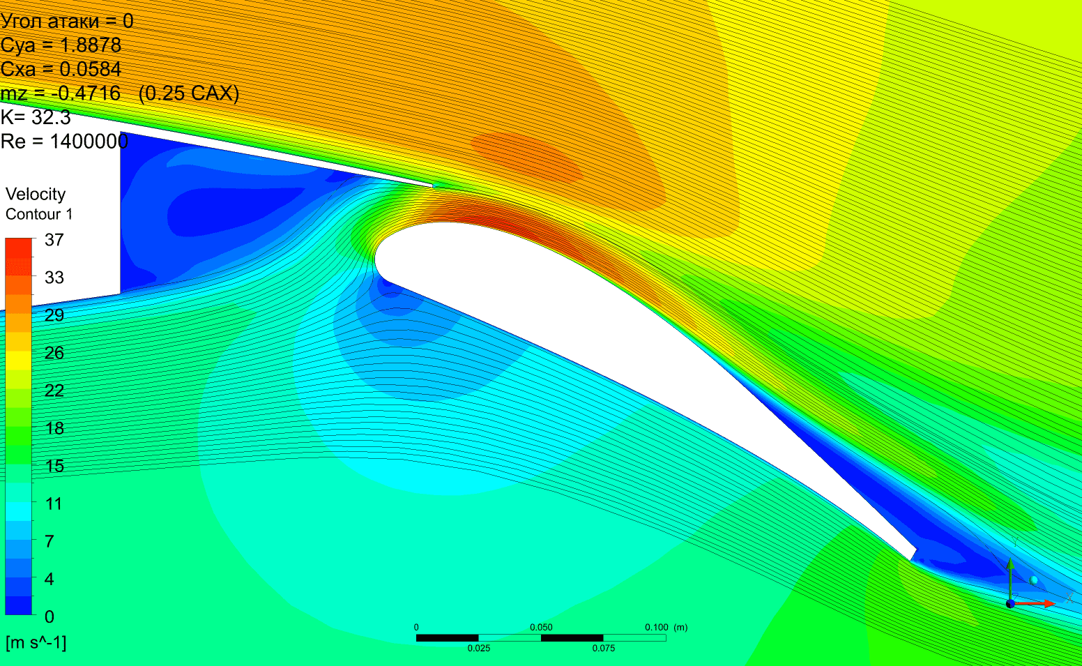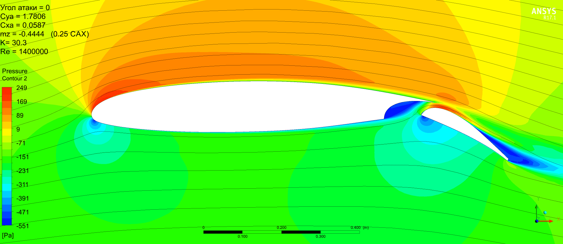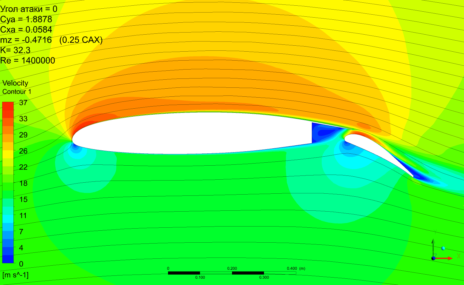 Но можно отметить, что качество получается выше, Су растёт монотонно без провалов. Картинка по пикам давления менее пятнистая. Срыв по достижении критического угла атаки в обоих случаях резкий и глубокий. Начинается на предкрылке. Однозначно сказать, что предкрылок не даст самолёту сорваться в штопор наверное нельзя.