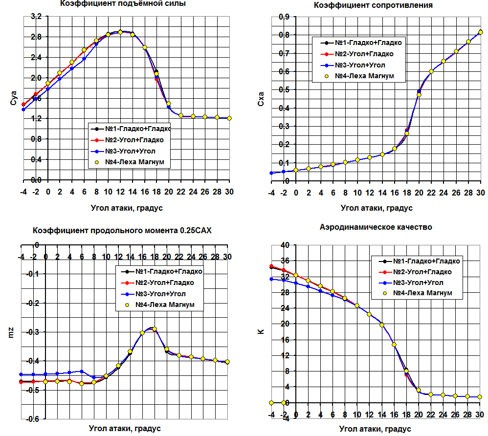 Здравствуйте, Фа-Фа.Могли бы Вы продуть мою машину с таким центропланом,как нарисовано?Меня смущает этот участок крыла,который на больших углах ещё имеет несущие свойства.Этот участок, как понимаю, должен сорватся в первую очередь,а он ещё несущий до 20 градусов.