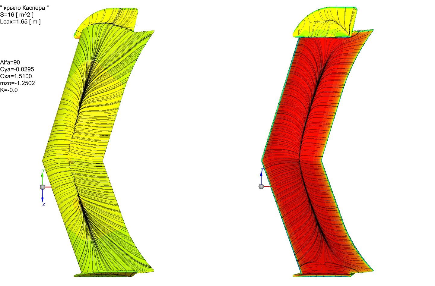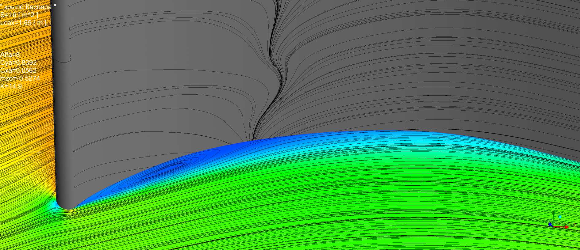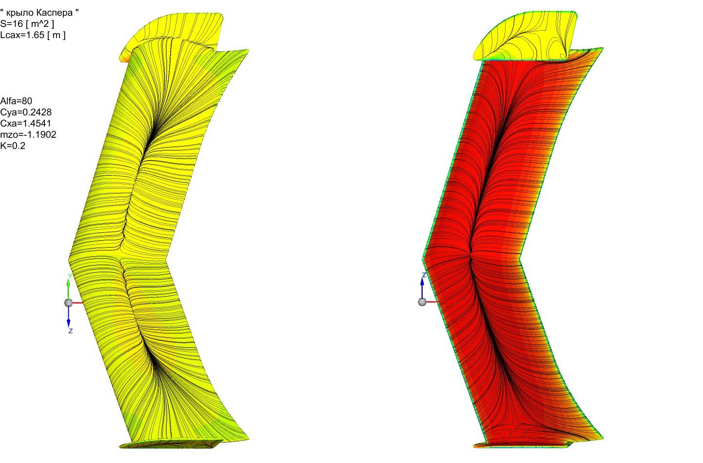 Присоединяюсь к пожеланию. На углах больше 25 градусов не наблюдается вихрей на верхней поверхности, только какие-то линии тока вдоль крыла. Плюс было-бы не плохо заценить насколько хорошо работают шайбы на конце крыла.