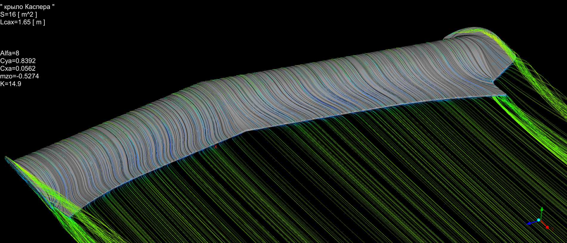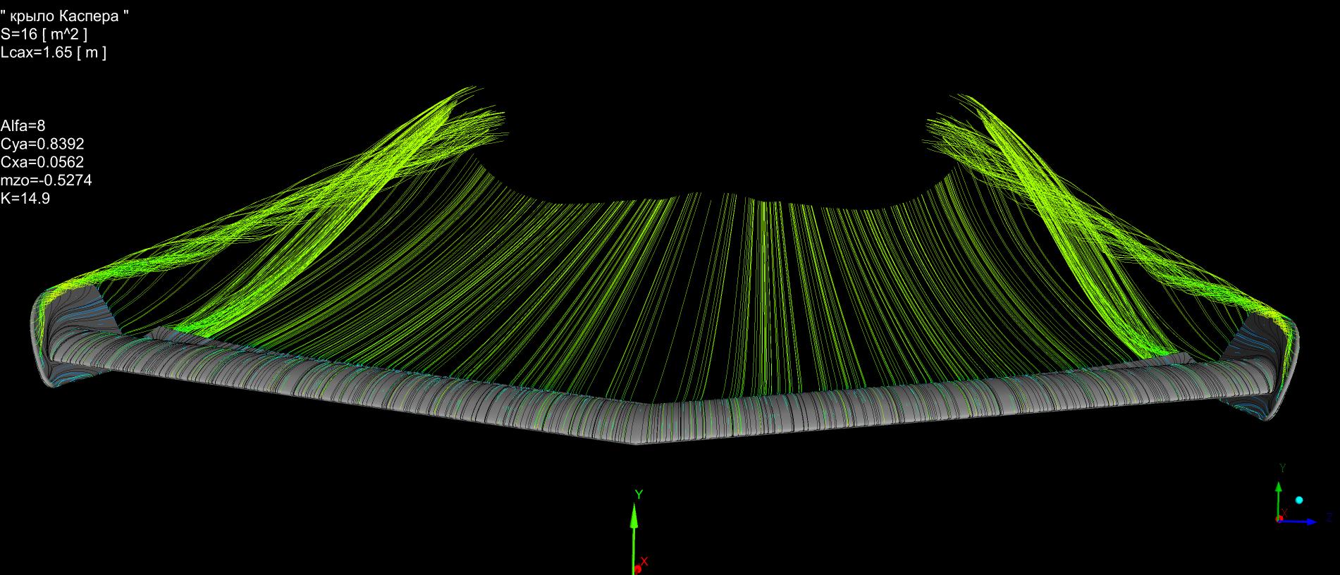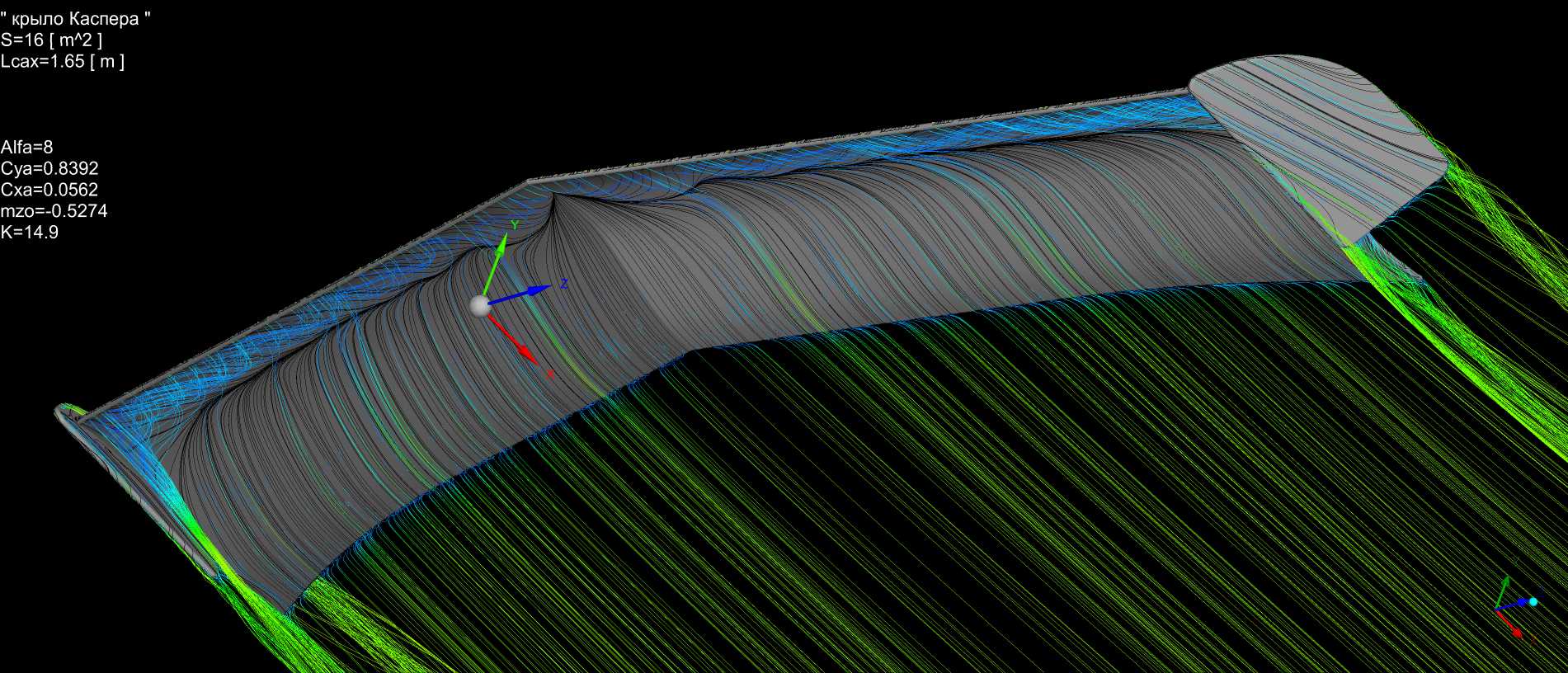 Присоединяюсь к пожеланию. На углах больше 25 градусов не наблюдается вихрей на верхней поверхности, только какие-то линии тока вдоль крыла. Плюс было-бы не плохо заценить насколько хорошо работают шайбы на конце крыла.