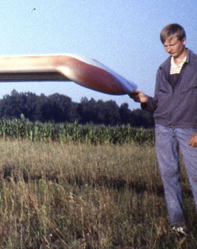 Это -"Стимул", планер моего учителя В.В.Чебаева,построенный под его руководством в ЮПШ г. Ульяновска в 95-м году. В общем-аппарат-то невыдающийся, К=16,  но цельнокомпозитный, с эксплуатационными перегрузками +6/-3 и массой пустого 110 кг. Здесь видео полётов с ним
