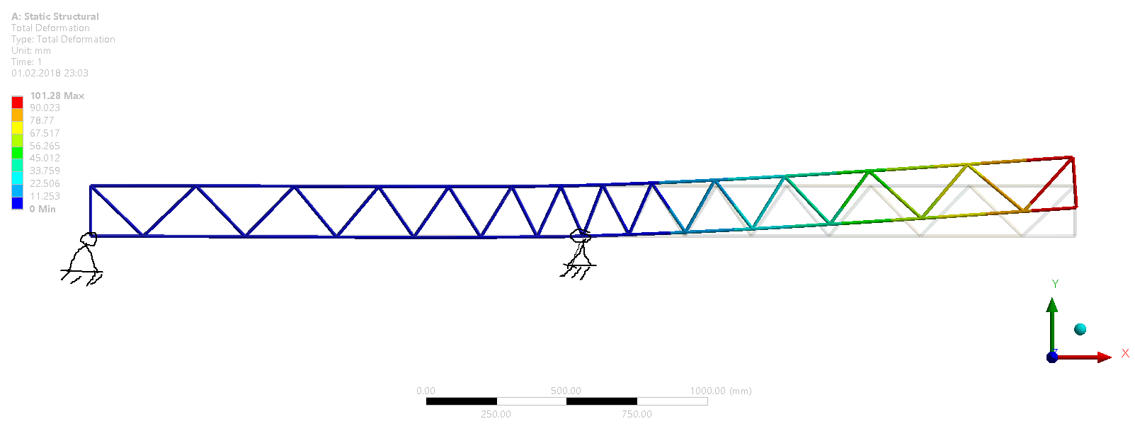 Если из угольной арматуры 10мм, то все гораздо веселее и жестче ( прогиб 36мм) вес 1.7кг, двойной запас по потере устойчивости и т.д.