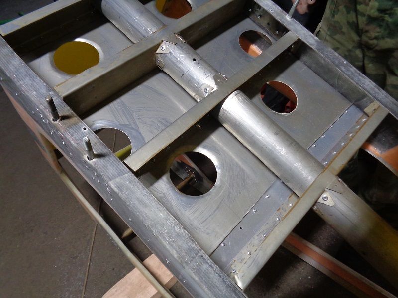 На Жёлтом три шпангоута для пилотской кабины,один для качалки РВ и страховочного троса костыля,и два собствено лонжероны киля и две половинки бортов вместе с обшивкой в районе пилота.