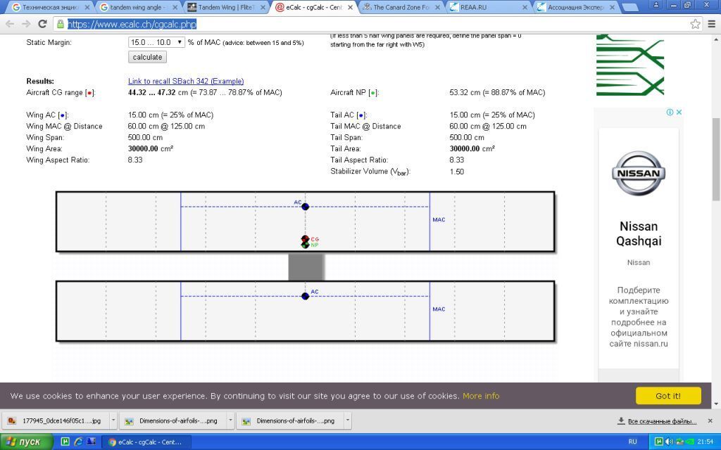 В связи с плоской нижней поверхность возникает вопрос срыва потока с нижней части заднего крыла в потоке скошенного передним крылом  при нулевых и или отрицательных углах. Может на заднем крыле применить двояковыпуклый, а то и симметричный профиль-у них срыв с нижней поверхности на меньших отрицательных углах