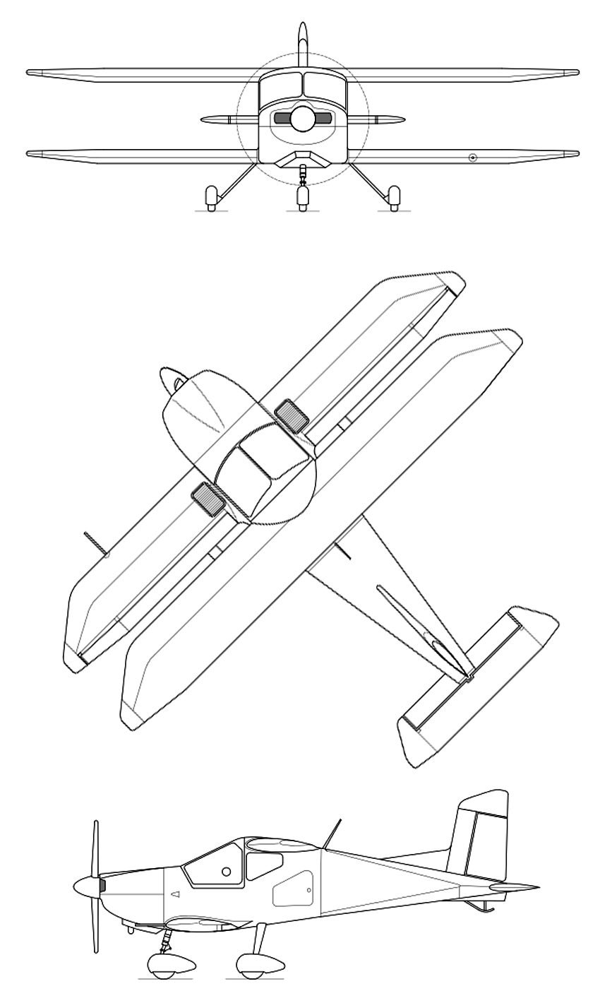 Да ничего собственно говоря удивительного тут нет, биплан строится с отрицательным выносом, только между крыльями зазор по длине 300 мм . Почти тандем. Где грань, не понять 😉