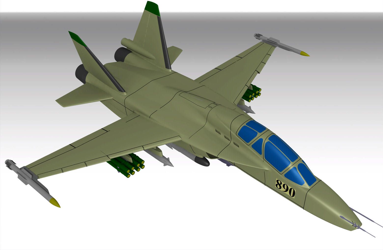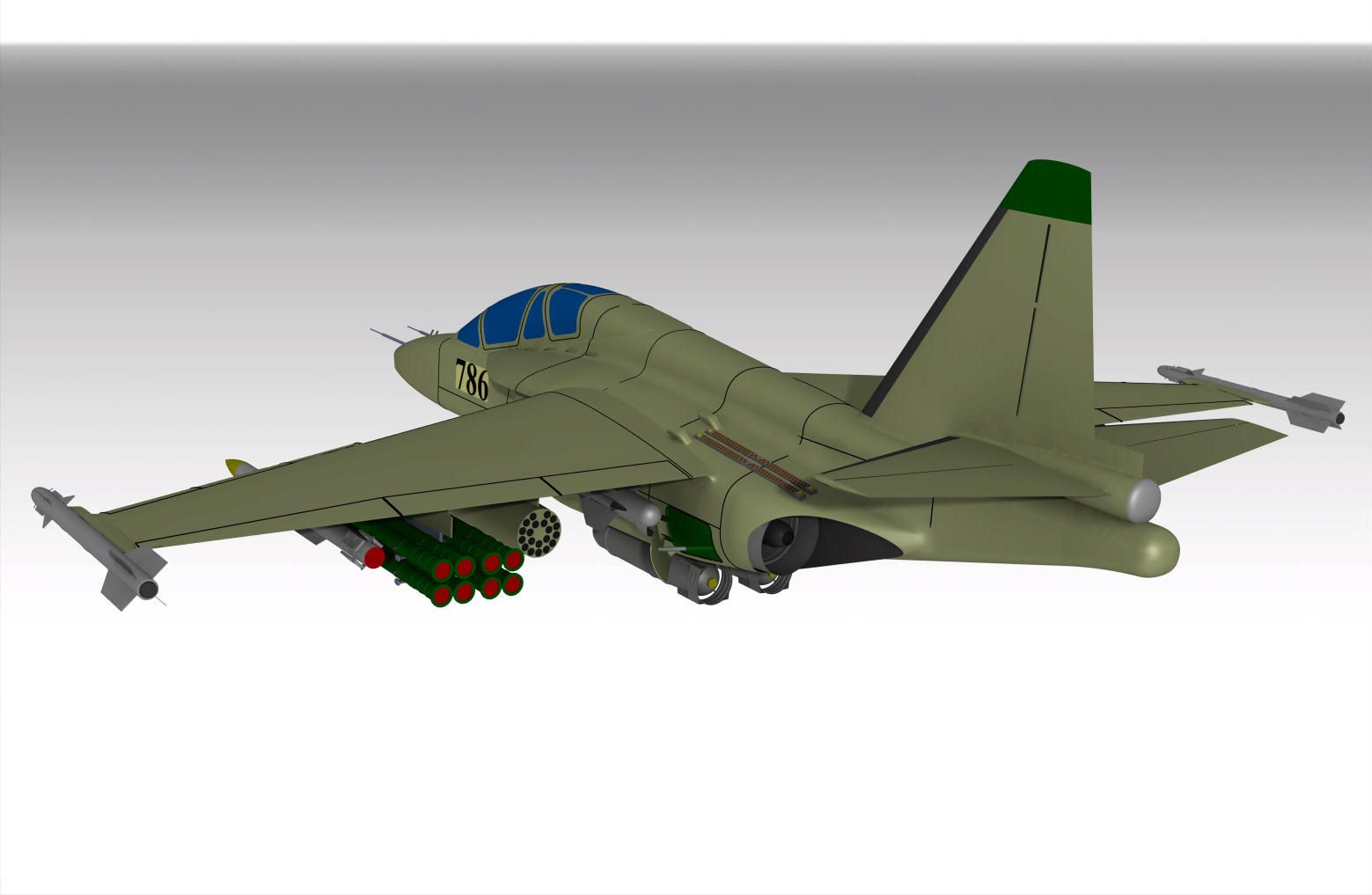 Если говорить о использовании решений от F-18 или Су 27, то можно говорить о варианте 786. Я уже показывал проект 784, где использовался практически готовый Су-25/Су-25 УБ, только устанавливались новые моторы типа РД-33. Вот 786- это развитие 784.
