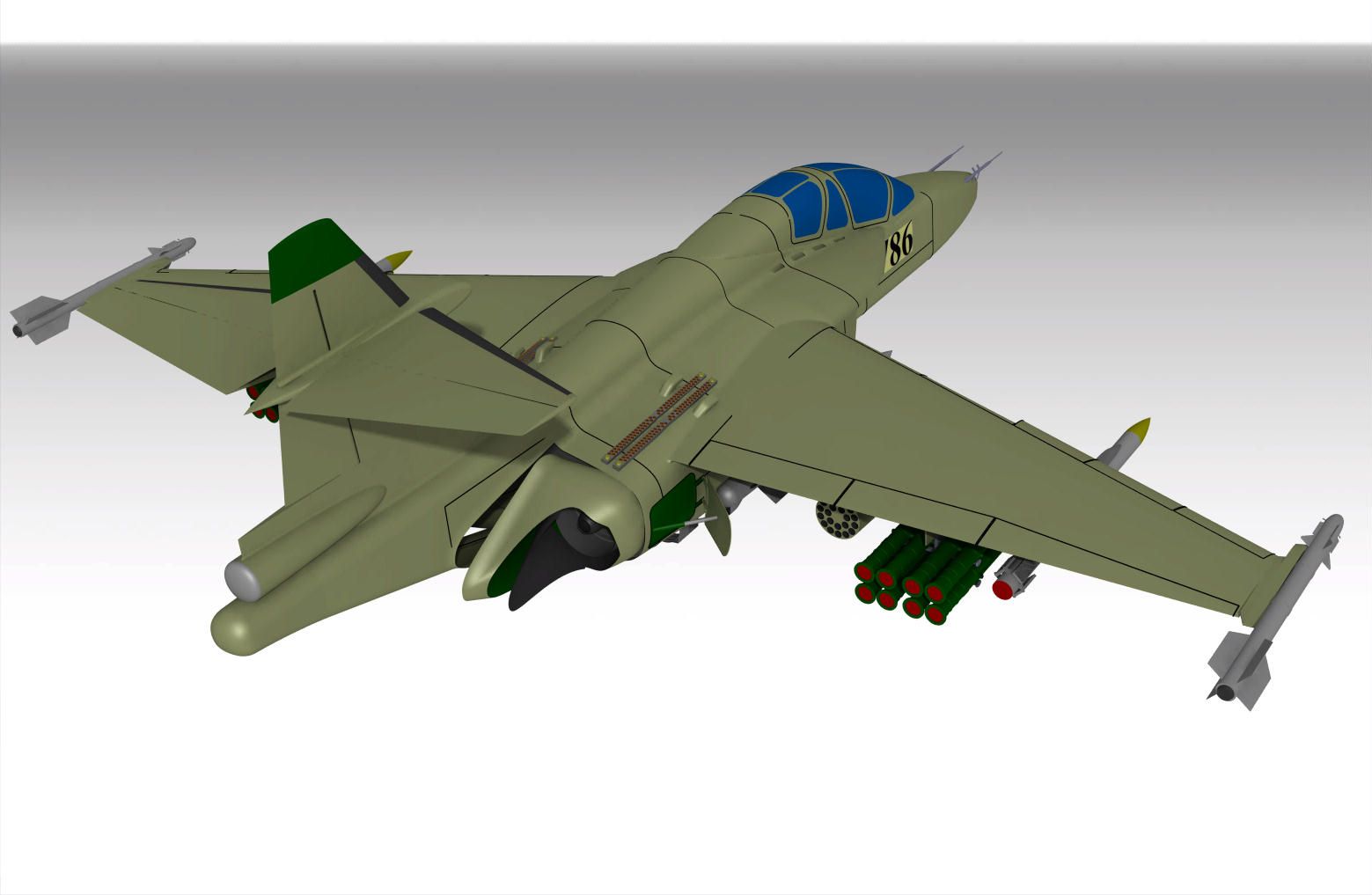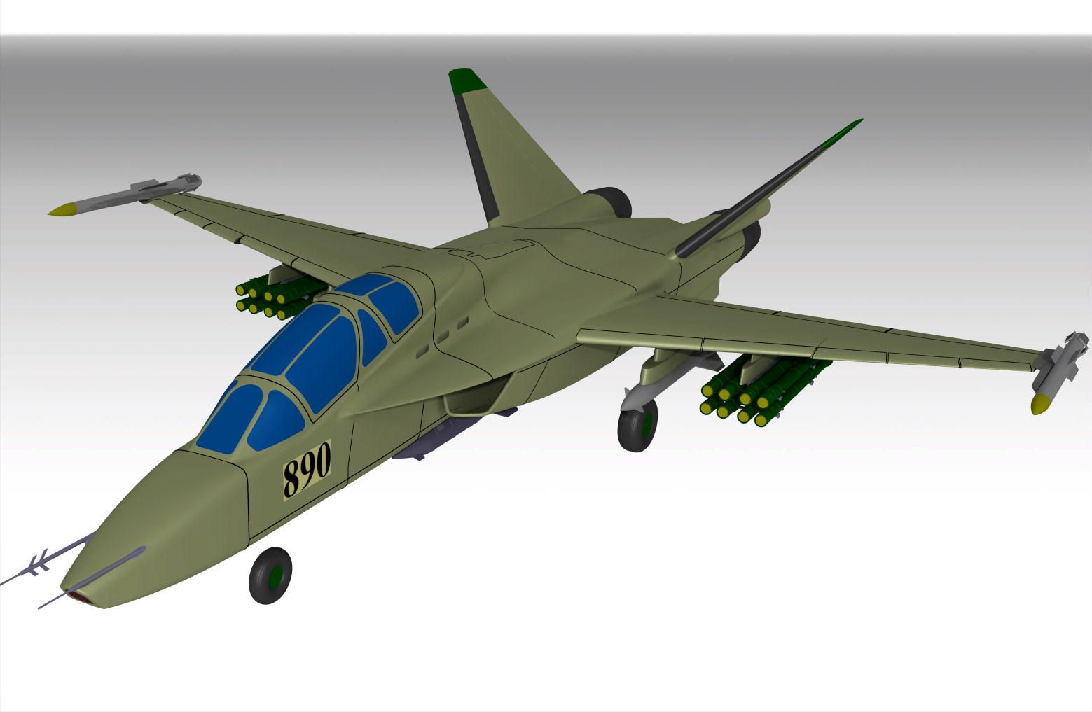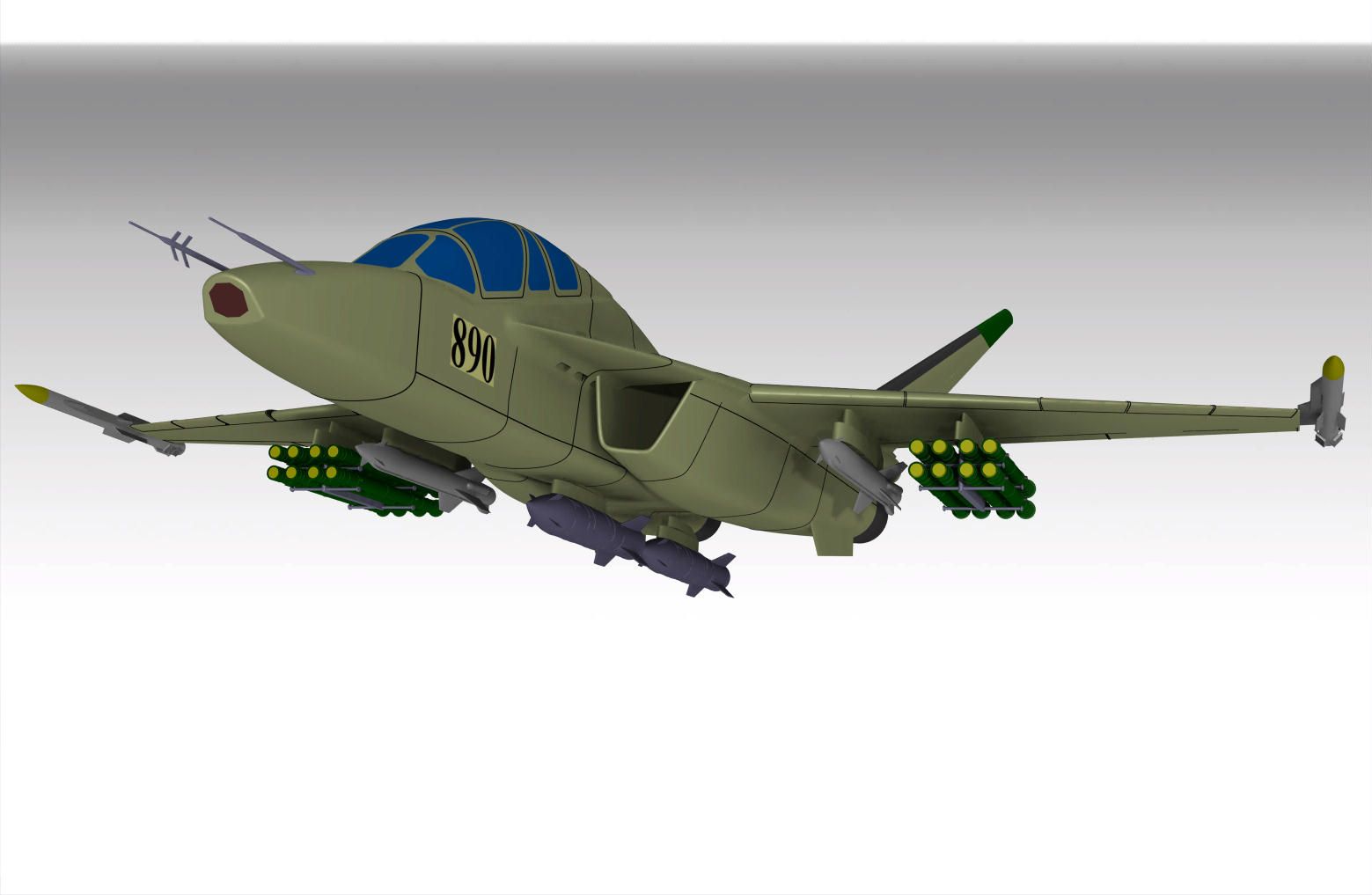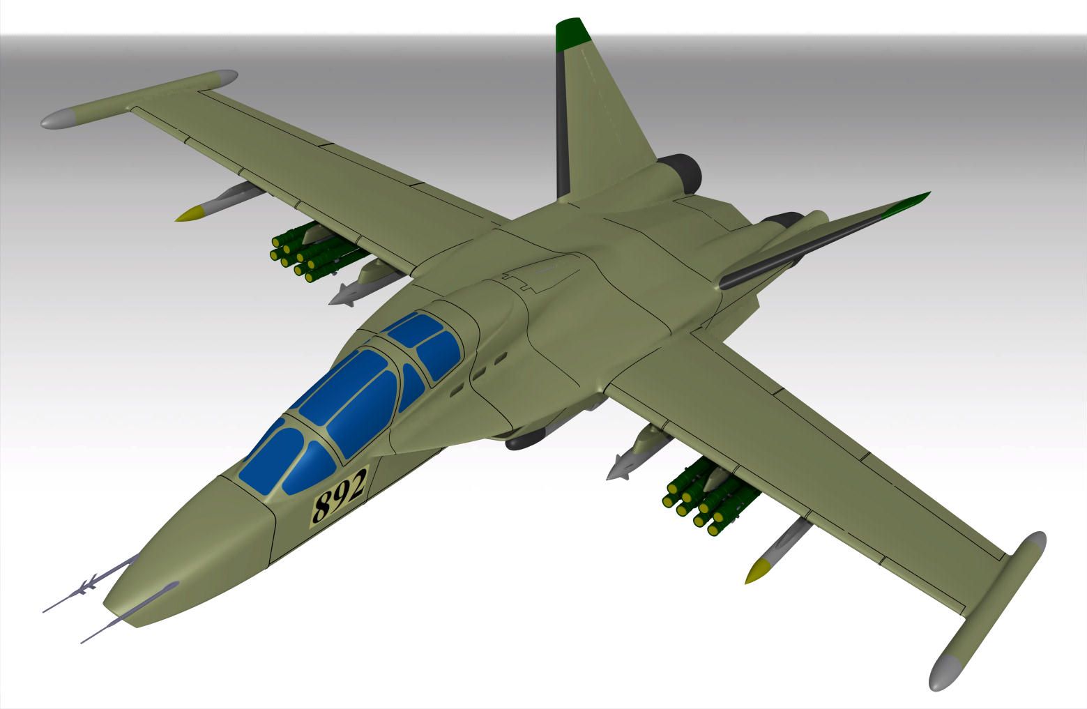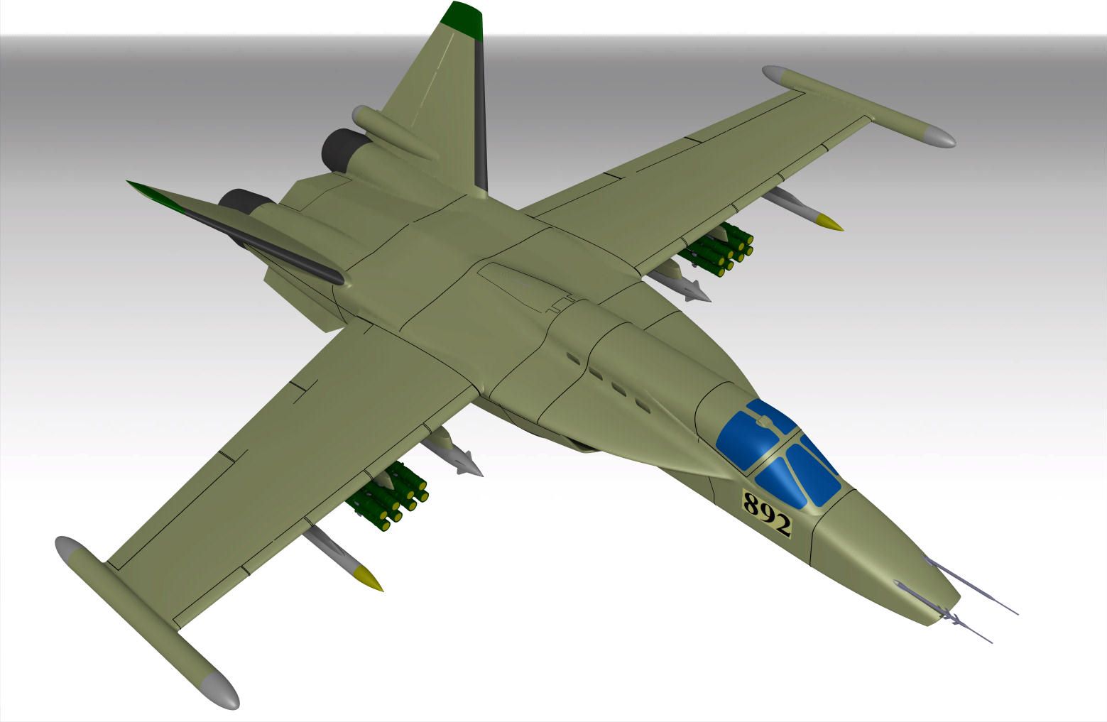 Модификация крайнего проекта штурмовика. В принципе все то же самое, но  видны поворотные сопла. В конце 80-х идея изменяемого вектора тяги была понятна и достаточно изучена. Вот конструктора и попробовали реализовать эту идею без сложных поворотных двигательных  сопел. Можно было бы попробовать поработать с реверсом. В общем, вот одна из идей и не более.