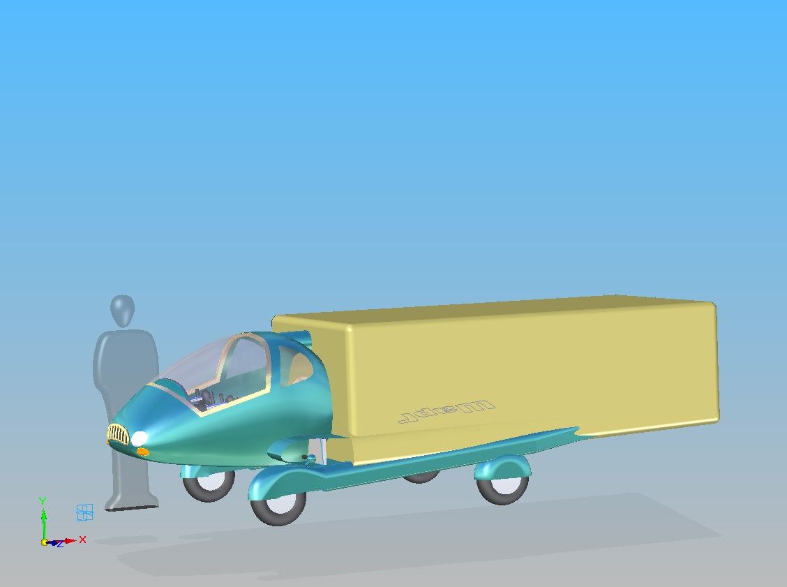 (Автор хотел с помощью фургона маскировать свой автосамолет под старый грузовичок.)