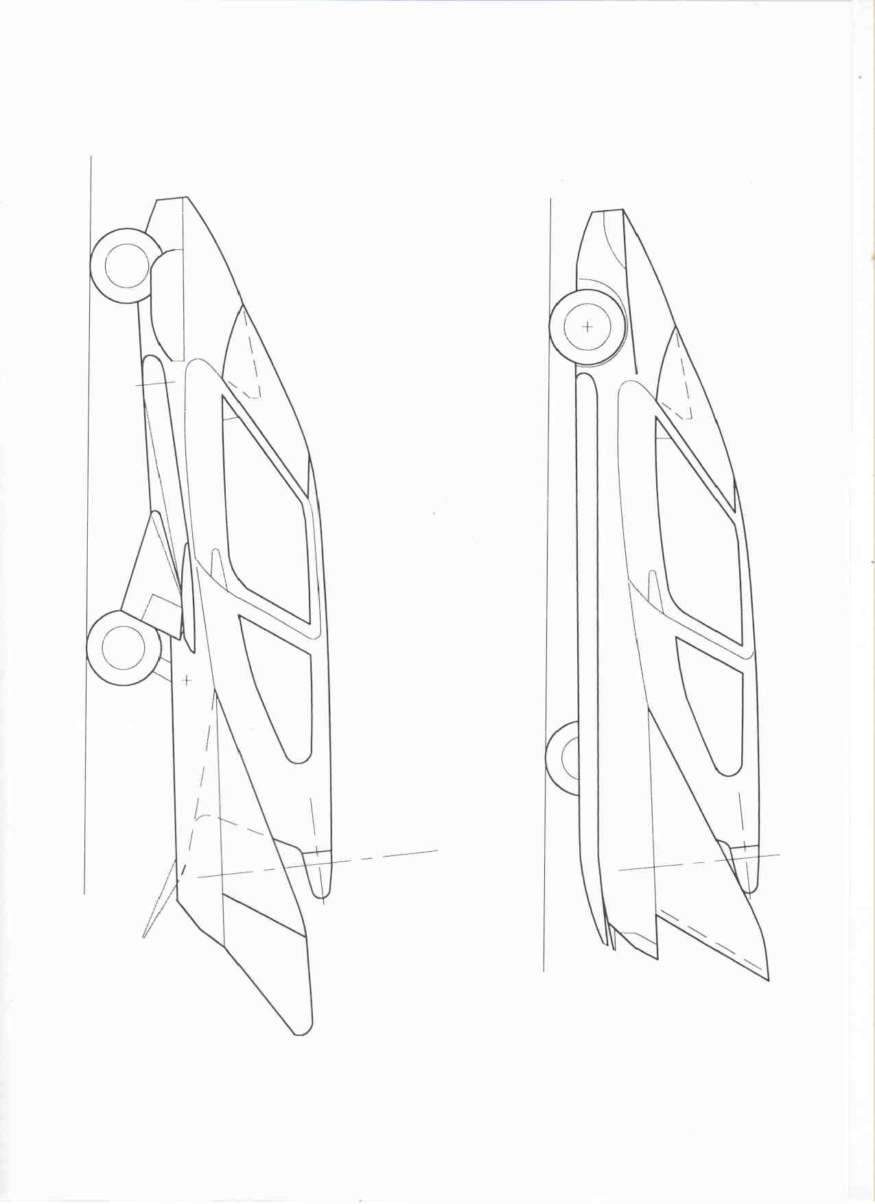 Трехопорная схема шасси с одним хвостовым колесом имеет минимальную массу и простую конструкцию. Для устойчивости на дороге колеса должны быть максимально удалены от центра масс (ЦТ). Такое шасси имела удачная послевоенная мотоколяска «Изетта» фирмы БМВ. Может подойти для АМ с «плавающим крылом», т.к. ЦТ может находится в центре опорного треугольника или ближе к передним колесам. Поперечная устойчивость на дороге будет нормальной. Привод на заднее колесо не требует дифференциала. Для АЛ «Стриж» такая схема подходит, если для возможности создания взлетного / посадочного угла тангажа заднее колесо можно было передвинуть ближе к ЦТ. Этого можно достигнуть, если стойку сделать с переменным углом наклона. В автоконфигурации такая стойка обеспечивает максимальную базу (и устойчивость) и минимальный клиренс.