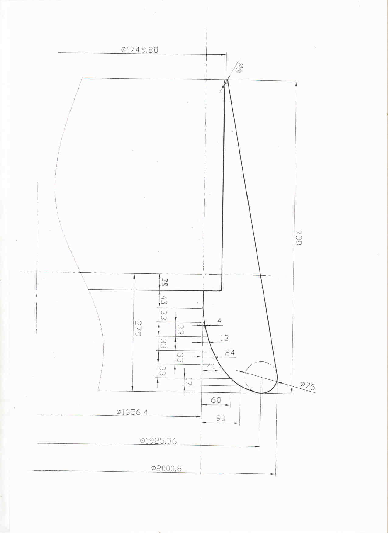 Вот чертеж профиля сечения насадки для ВВ катера на воздушной подушке (диаметр ВВ 1720, мощность до 150лс).
