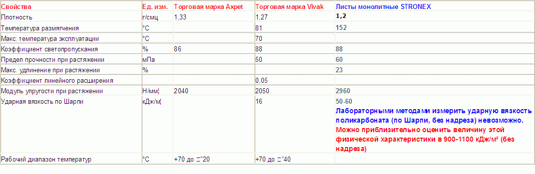 Можете сравнить свойства различных пластиков здесь       http://www.novattro.ru/polycarbonate/compare/
