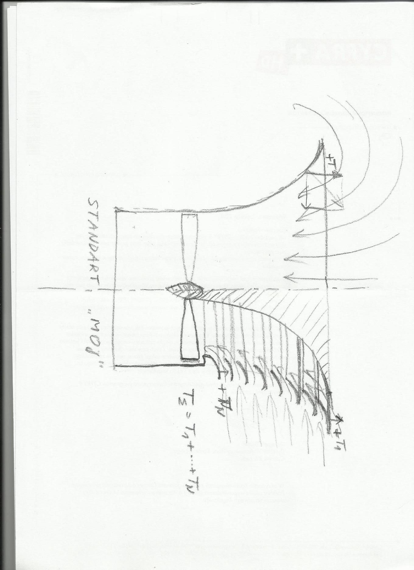 отноительно оси вентилятора\ почти на половину снижает тягу вентилятора!