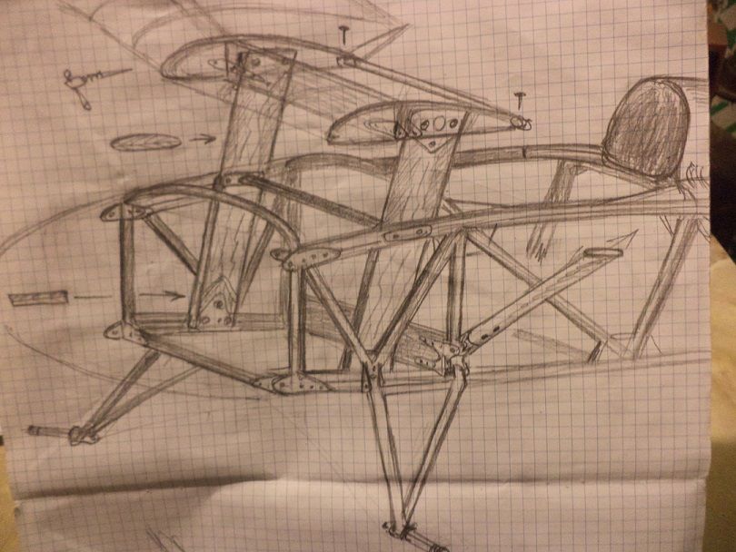 Не нравится на нём кабан центроплана,как выразился В.П.Лапшин :частокол знатный получился.Мне он и тогда не нравился ,всё хотелось чтоб чисто было,но тогда переубедили.Сейчас думаю сделать бы так ...  растяжки поставить только от подкосов к переднему шпангоуту за нижний узел моторамы,чтоб крыло не крутилось вокруг фюза.Что скажет народ?