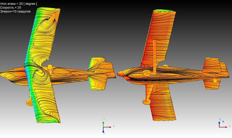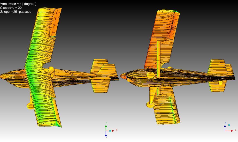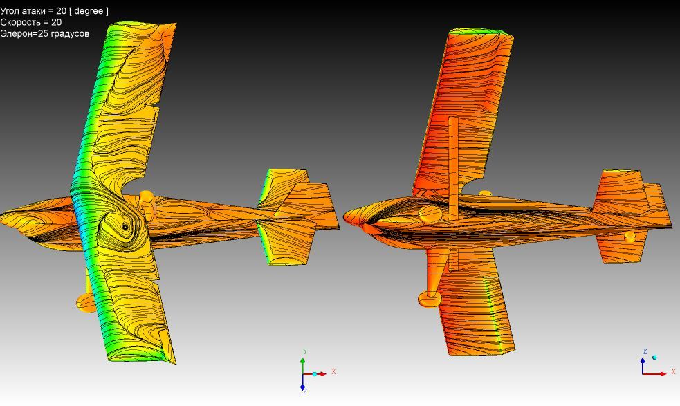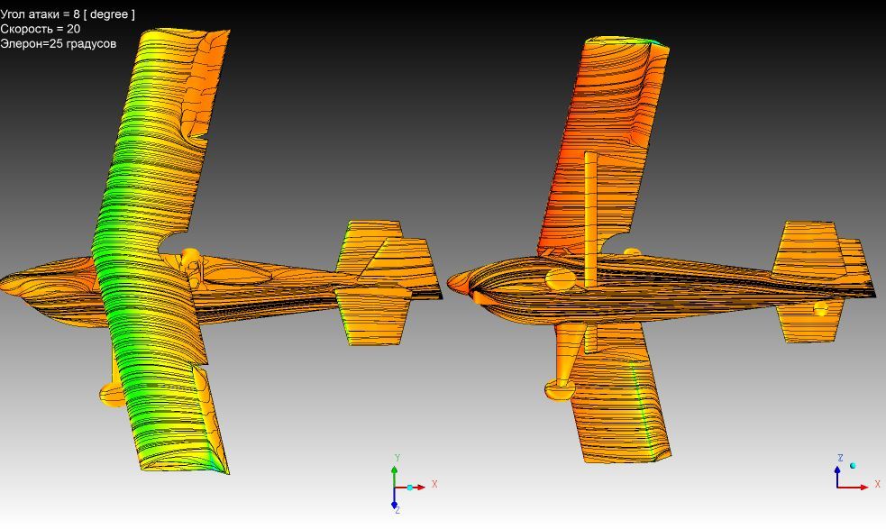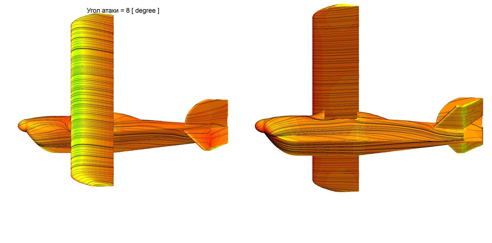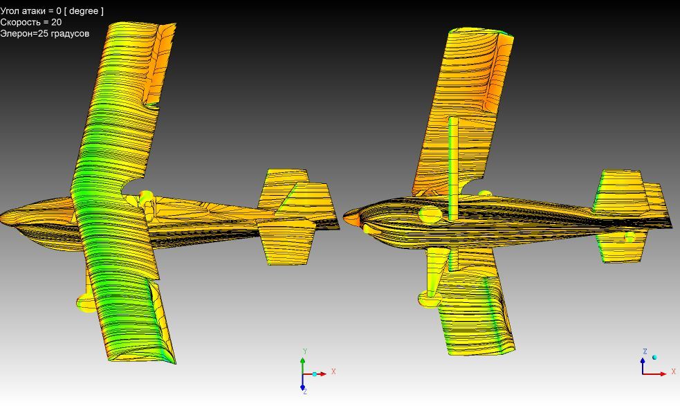 Интересно наблюдать что профиль с сильно урезанным ,тупо обрубленным хвостиком не убиваем даже на 20-ти градусах и наверно на 25-ти градусах будет в потоке или это отсос из-за выреза крыла?