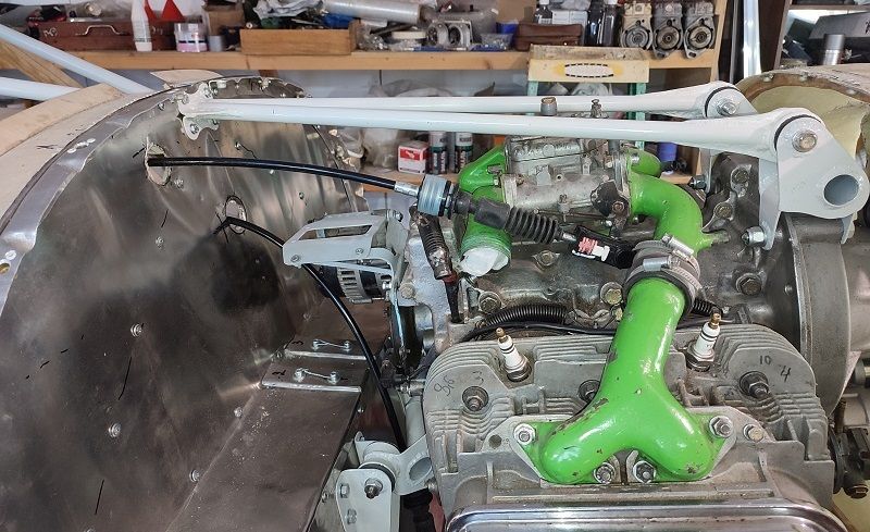 Управление газом и створкой капота сделал из тросов коробки передач Газели Некст. Увидел их в магазине и взял наобум, не зная, подойдут, или нет. Подырякался прилично, вот, наконец что то вырисовалось.