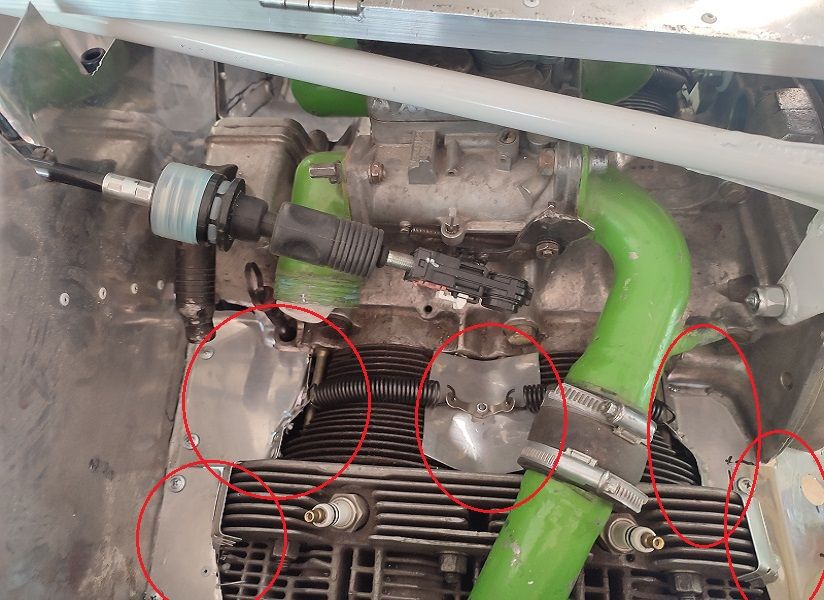 И, главное. Дефлектирование у меня симметричное. Косой обдув от винта, конечно может влиять. Если бы обдув цилиндров с левой и правой сторон был индивидуальным. Да, воздухозаборника два. Но дуют они в одну, общую камеру над цилиндрами, если там и есть какая то неравномерность давления, то она должна быть несущественна. И под цилиндрами камера общая, и три окна выхода воздуха. Центральный основной, с регулируемой створкой, и два поменьше, через которые выходят выхлопные патрубки. Так вот, дефицита охлаждения цилиндров, в среднем, по моему не наблюдается. Левая вообще не греется. А вот что не хватает правой...