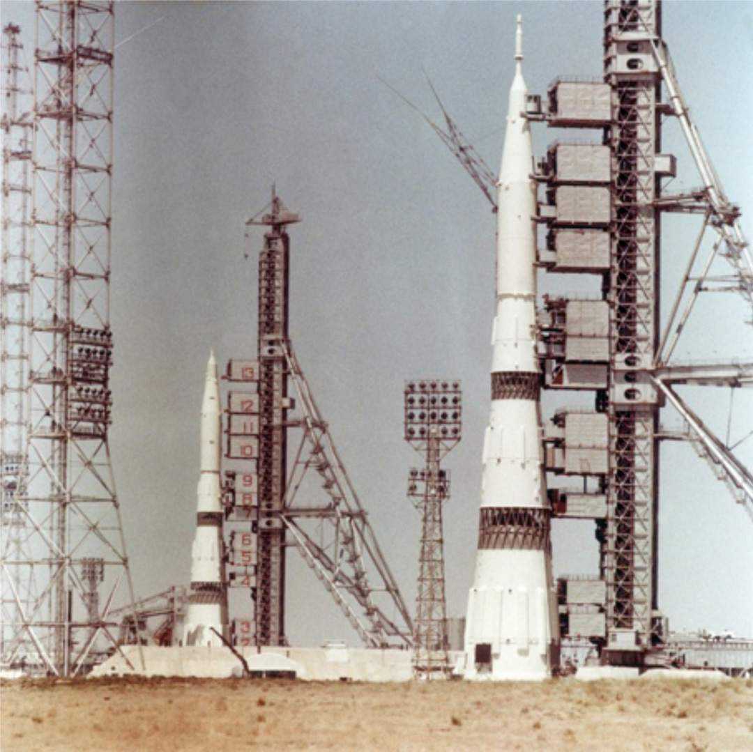 Интересная фотография, одновременно на пусковых столах два ракетоносителя.