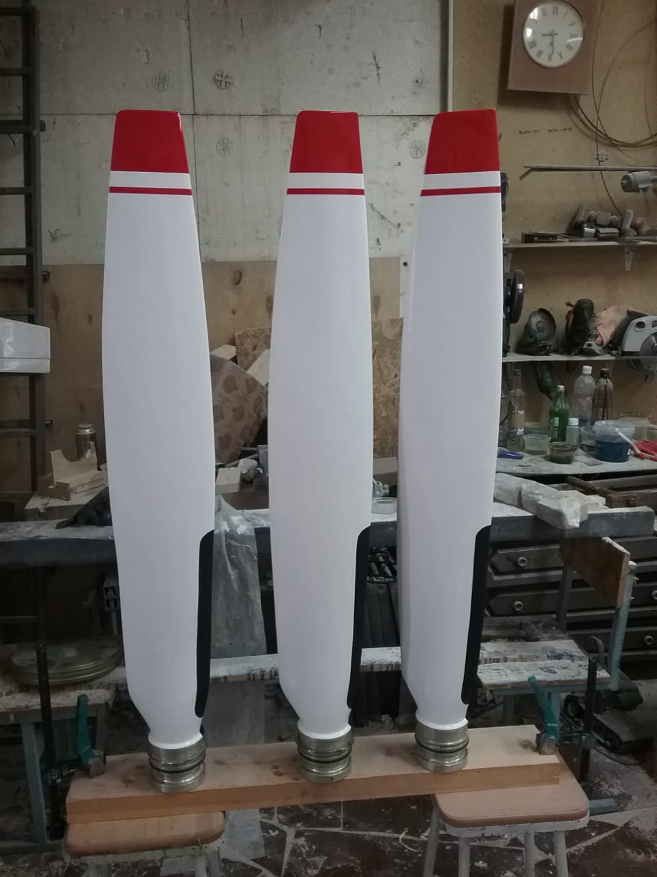 Получили винт в ремонт в удручающем состоянии. Сняли всю отделку и стеклоткань до дерева, дорастили переклеем из сосны(структура не отличима от заводской). Полная оклейка стеклотканью и замена металлической оковки. Покраска в заводскую расцветку, антибликовая матовая краска на внутренней части. Каждая лопасть отбалансирована на каждом этапе, финальная балансировка на стадии покраски. Результат можете наблюдать ниже на фото.