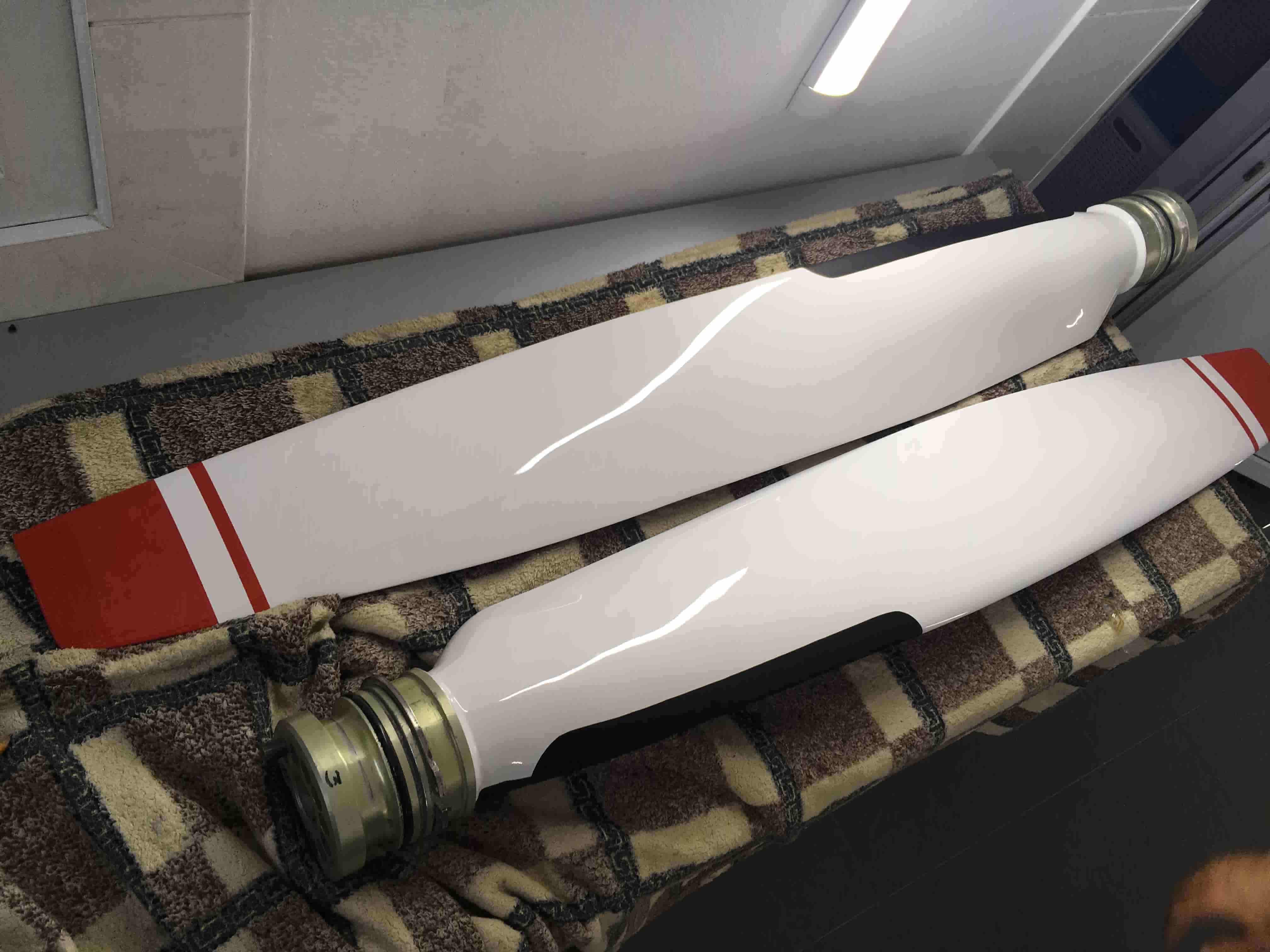 Еще один комплект лопастей MT-Propellers, финальный этап - наклейка антигравийной пленки на околокомлевую часть. Две лопасти пришлось нарастить, заново оклеить стеклотканью и оковать нержавеющей сталью, третья лопасть заодно со всеми прошла этап косметического ремонта. Все лопасти были индивидуально отбалансированы по моменту. Позже будет больше фото ДО ремонта.