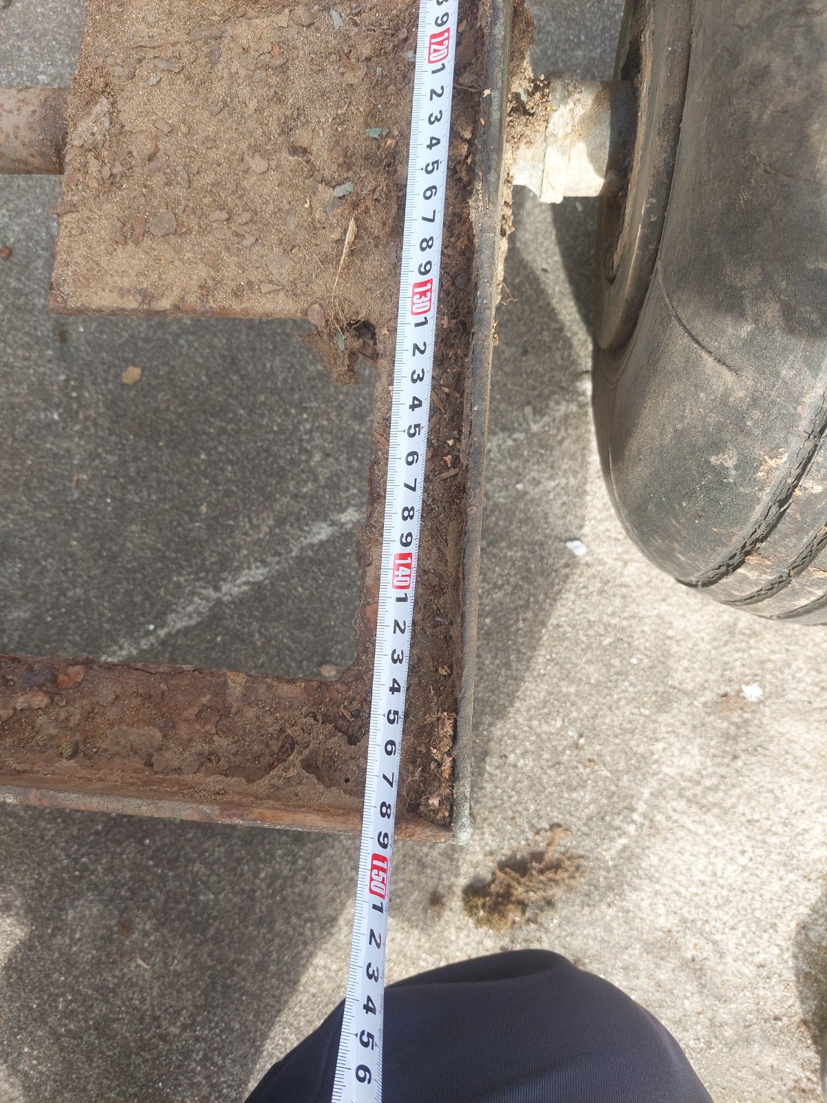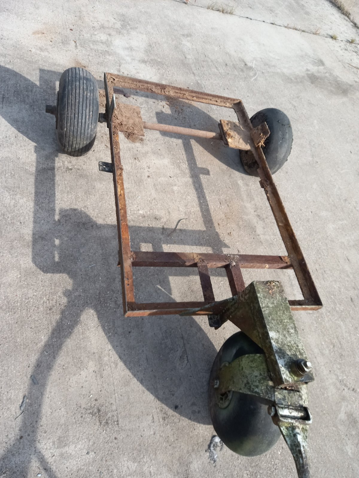 При обследовании зарослей, обнаружили вот такую тележку. Изначально судя по всему, это была аккумуляторная,тележка. Останки фанерного корпуса и дна мы выбросили. Колеса накачались, но на одном порвана покрышка. Размер 480*200. Если кто-то может подарить или продать недорого, мы будем рады.