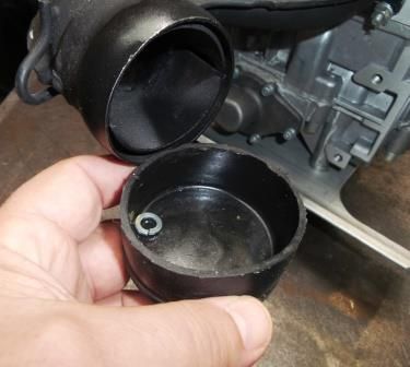 Такого рода система смазки показалась нам невменяемой; совет из интернета отбирать часть масла от трубочек маслонасоса и тем самым обеднять смазку мотора посчитали невозможным. Поскольку зависеть от уровня доливки маслобака мы не хотели, мы подвели к штуцеру отдельную прозрачную трубочку, которую соединили с прозрачным бачком сцепления от «Жигулей», который служит и маслобаком и суфлером для привода помпы и маслонасоса.