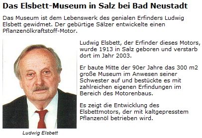 По сути правильно поняли:  поеду в музей ... вихревого дизеля и других мото-разработок творившего до 90лет Эльсбета. Он умер только каких-то десять лет назад ...