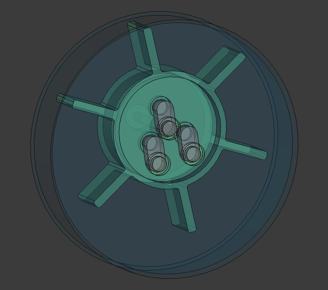 Всё. Получаем два равных объема: между внутренним и средним ротором и между средним и внешним роторами. При вращении лопатки будут перемещаться в пазах за счет эксесистента, изменяя объемы два раза за оборот. Например, от 0 до 180 гр по углу поворота в внутреннем объеме будет идти расширение, а от 189 до 360 - сжатие. Во внешнем объеме наоборот. И никаких серьг, кривошипов, апексов, и тд. Ну, апексы могут добавиться, если внешний ротор станет неподвижным статором, вдруг надо. Не? 😉