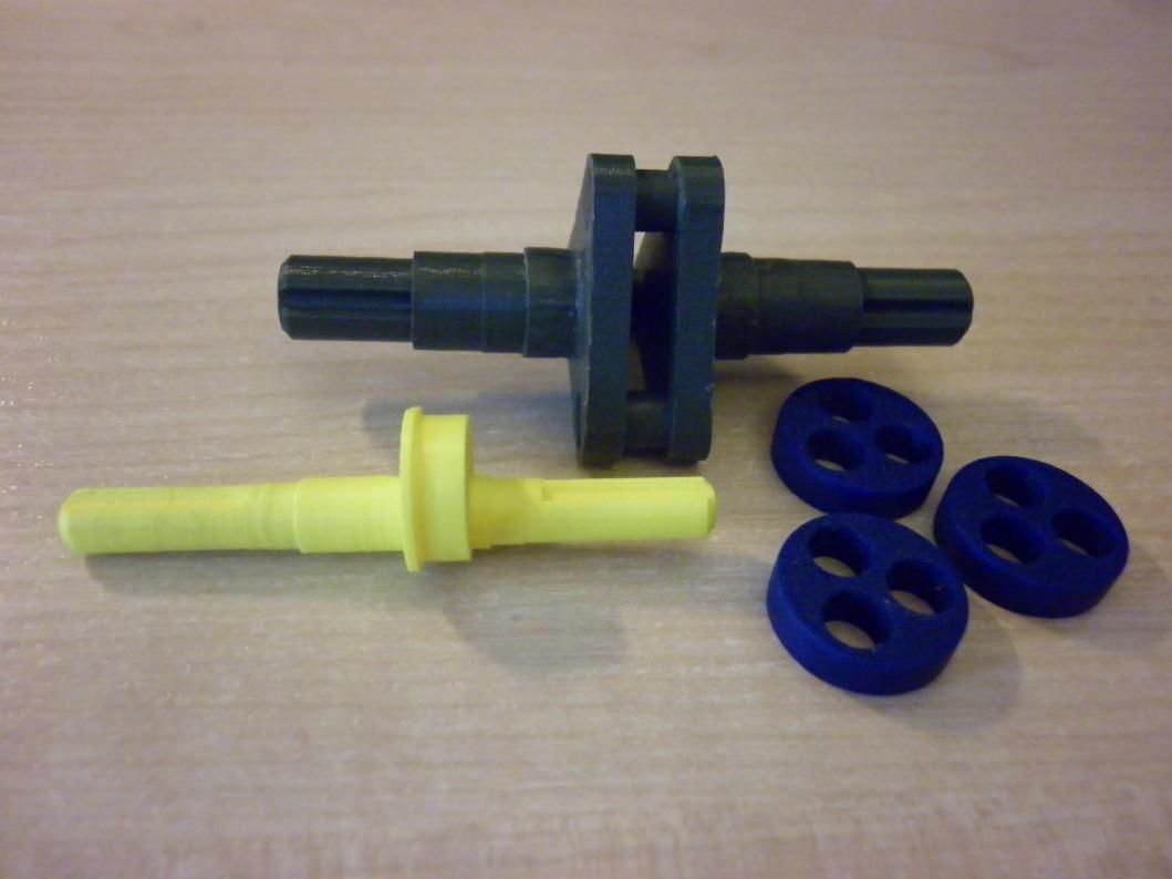 Т.е. составной вал с тремя разрезами (для составных строенных цевок) и как-то разрезать ещё два раза реальные проставочные валы (валы съёма мощности) для установки двух подшипников на промежуточных опорах (и ешё шестеренок, см. ниже).