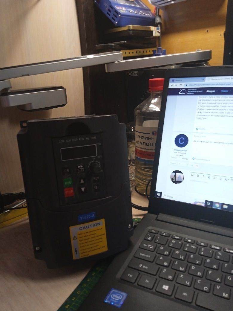 Я так же и сделал. Мотор трёхфазный 1.5 киловатт. 1500 об мин. Преобразователь с одной фазы 220 делать будет три фазы 220 на 2.2 кВт. Только что купил на алиэкспресс. Пока идёт разобрал станок буду импланты ставить третью ногу и бетонировать. Жалко хороший и так был. Но боюсь опять сгорит блок управления и ремни тонкие. А толстые ремни не ставят чтобы мотор прокручивался при заклинивании чтобы блок управления не перегружать и из за экономии.Даже не вздумай, он просто не включится, уйдет в ошибку по сопротивлению обмоток. Есть простое правило подбора частотников к мотору - он должен быть равен мощности мотора или может быть больше его, но не более чем на одну ступень.
