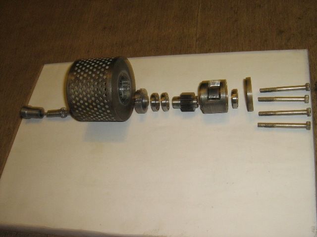 На начальном этапе воздухозаборник был изготовлен  в   виде "сетчатого стакана  5х5", но потом пришлось от него отказаться по причине того, что первый вариант "ответ 128" при пробной раскрутке стартером турбины , мягко говоря "сточил " маслосъёмное кольцо турбокомпрессора ТКР-11 238Б. Идеальной центровки редуктора и компрессора такая конструкция не позволяла осуществить, поэтому пока   :'( остаётся такая "жёсткая" конструкция воздухозаборника. Внутрь него вставляется подшипник, который надевается на вал турбины.  Этим и была достигнута  центровка редуктора и турбины.