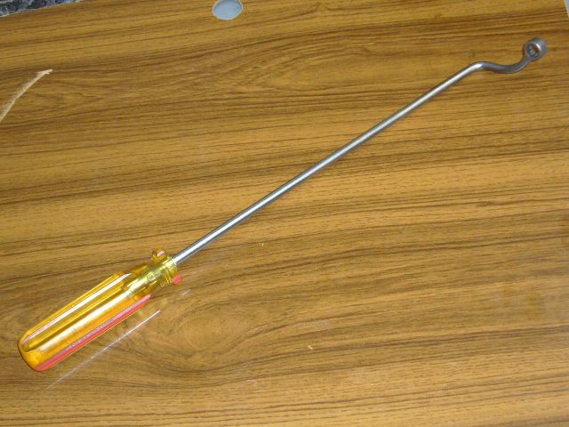 Вот такой длинный загнутый ключ на 11 мм. я сделал для того чтобы снимать компрессор с Як 52. Если использовать шатный инструмент, то надо снимать много лишнего сначала прежде чем доберешся до одной единственной гайки, которая и тормазит процесс. С этим ключем ту гайку можно достать ничего предварительно не снимая. Экономия времени- примерно пол-дня.
