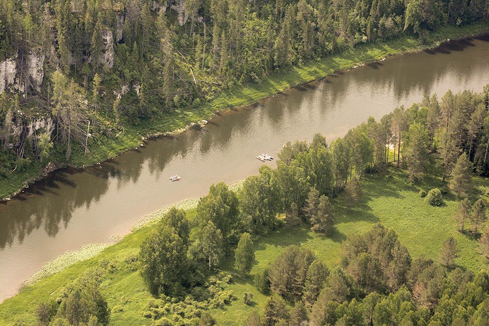 Показались первые сплавщики. А вообще их очень много на Чусовой