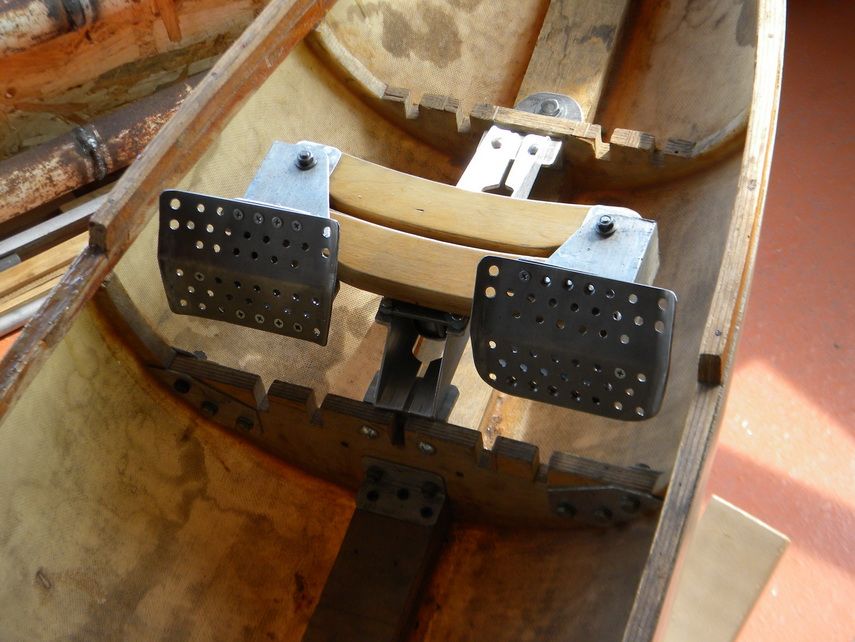Ещё надо сделать подпятники, к которым будут крепиться тросы управления. Но пока с педальками тормознусь. Дочь привезла долгожданные зажимы для бумаг и нужно продолжать оперение.