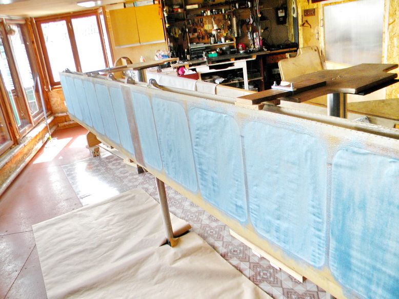 Это и экономически целесообразно, и с точки зрения культуры веса. Кроме того приклейка эпоксидкой технологически более удобно, чем те что я уже попробовал на рулях, это 88 и мгновенно склеивающий глаза и пальцы секундный клей. Потому что хорошо проникает сквозь ткань до основы.