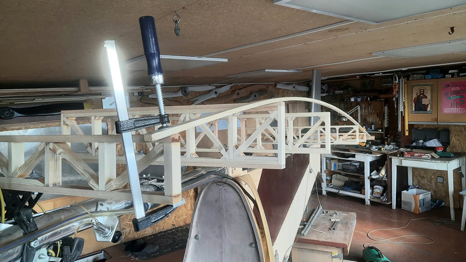 Получилось. Это два вспомогательных лонжерона. К ним будут еще два маленьких подкосика к дополнительным проушинам на хвосте шарниров. Для жесткого закрепления положения центроплана.