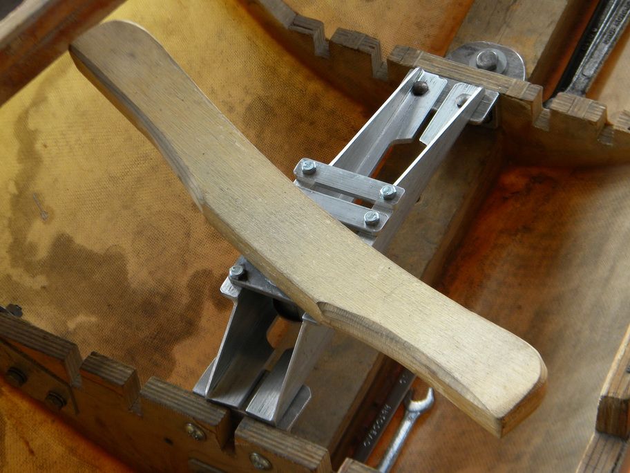 Соединение длинной тяги (справа) и короткой от ЦШ (слева) на качалке, левая сторона планера.