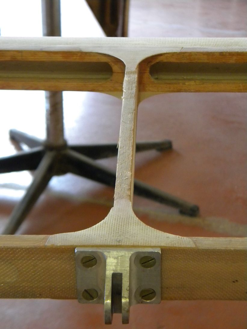 Ну вот, хотел начать обтяжку, но что то сомнения закрались. Ещё один косяк от автора сего произведения. В выемке в лонжероне под шарнир углядел слабое место, концентратор напряжений.  Хоть и не так, как на РН но тоже не комильфо. Решил подклеить фанерку и наложить кусок фильтровальной ткани. Да и выемки для установки болтиков в шарнир просто огромные. будут снижать эффективность рулей. Сделаю вырезы поменьше, чтобы шипчиками и пинцетиками болтики с гаечкой ставить.
