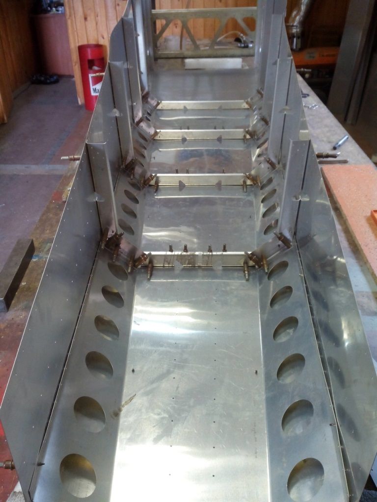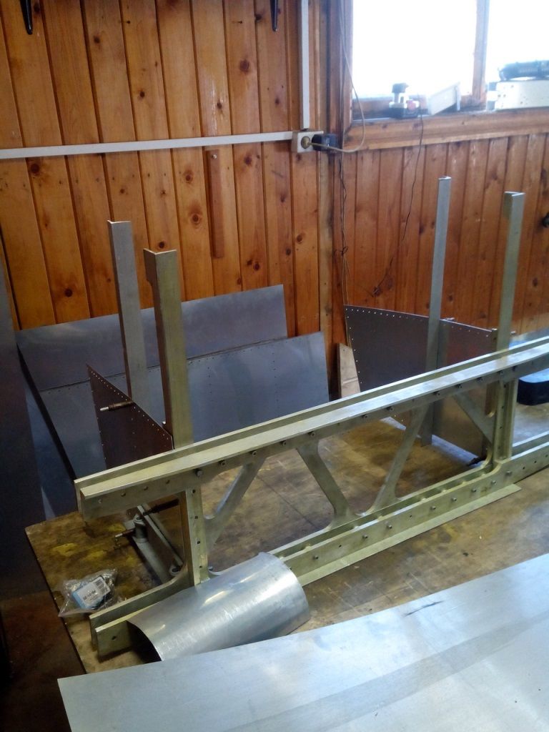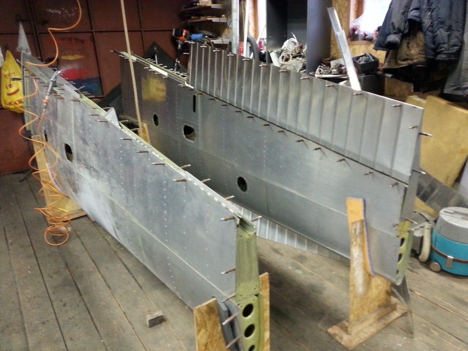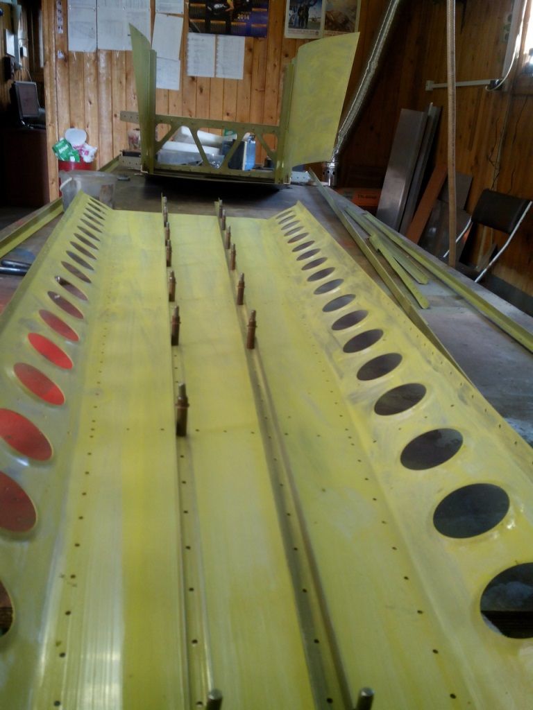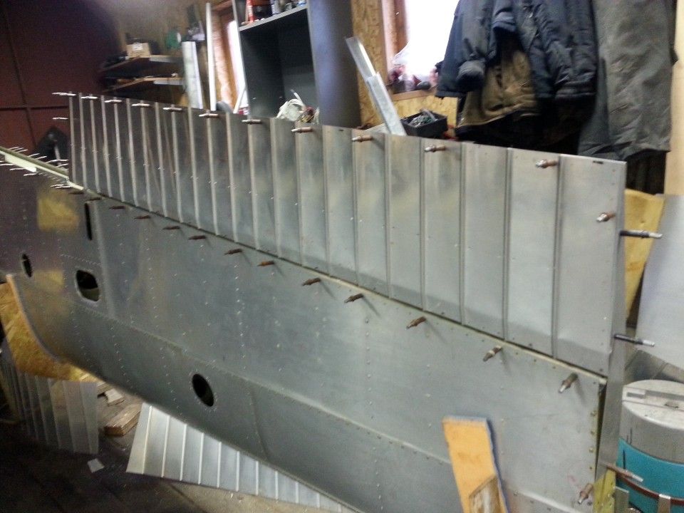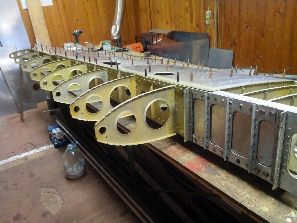 Это я понял по имеющимся фотографиям. Интересно как рояльная петля завязана на остальную конструкцию и как приклепана. Надеюсь появится возможность это показатьПрямо сразу не могу по причине моего отсутствия на месте. Да и показывать особо нечего, достаточно сказать, что навеска и закрылков и элеронов выполнена на рояльных петлях. Ось поворота закрылков снизу, элеронов - сверху.А не могли бы вы навеску элеронов и закрылком более подробно показать?