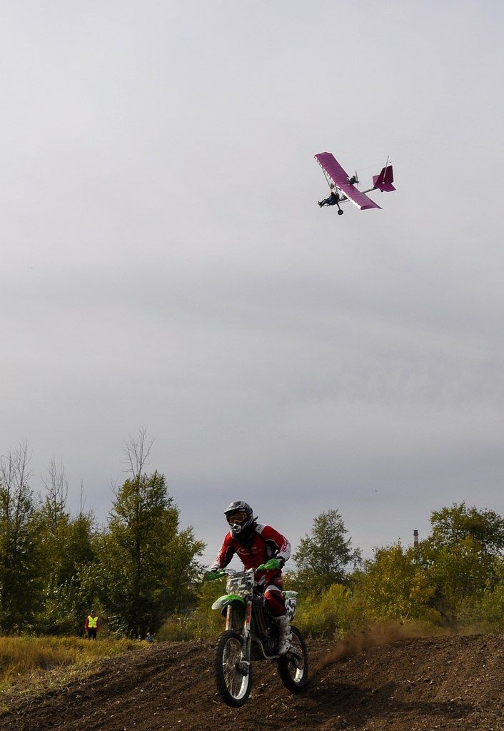 Мотогонщики то не напугались, а вот судьи на трассе совсем сбились со счета количества кругов участников соревнований. В результате был сделан перерыв для просмотра показательных выступлений. Особенно всех восхитило упражнение "Гонка на Драгонфлае по мотоциклетной трассе с преодолением трамплинов". Равных Драгонфлаю в этом слаломе не было!!!