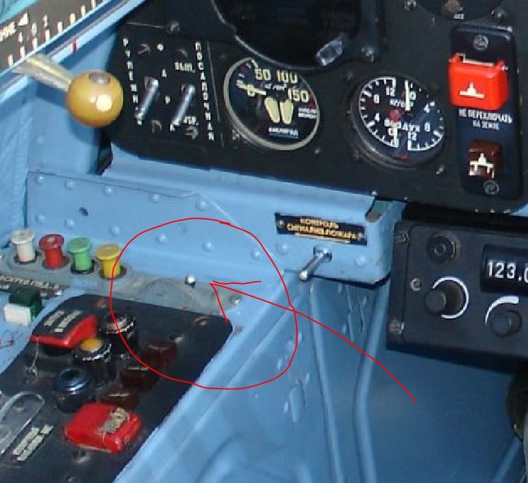Это?Над радиостанцией вверху у борта,нажимаешь левой рукой вперёд при уборке тормозных щитков,смотришь на манометр,давление растёт.Если не дозарядились с первого раза,то процедуру повторить.