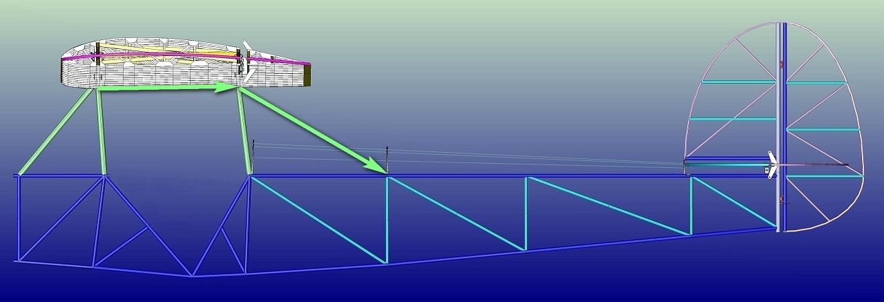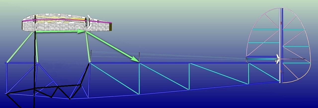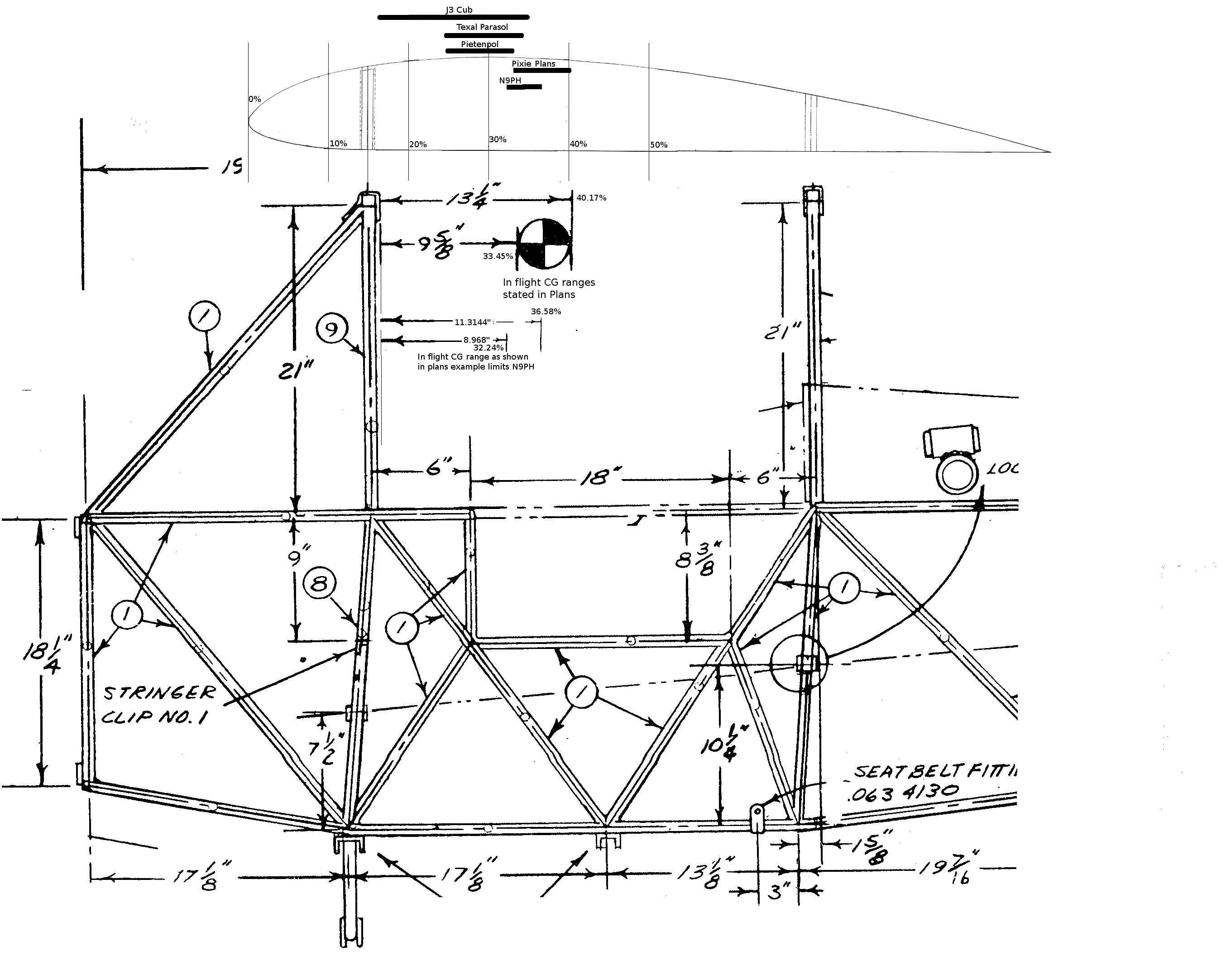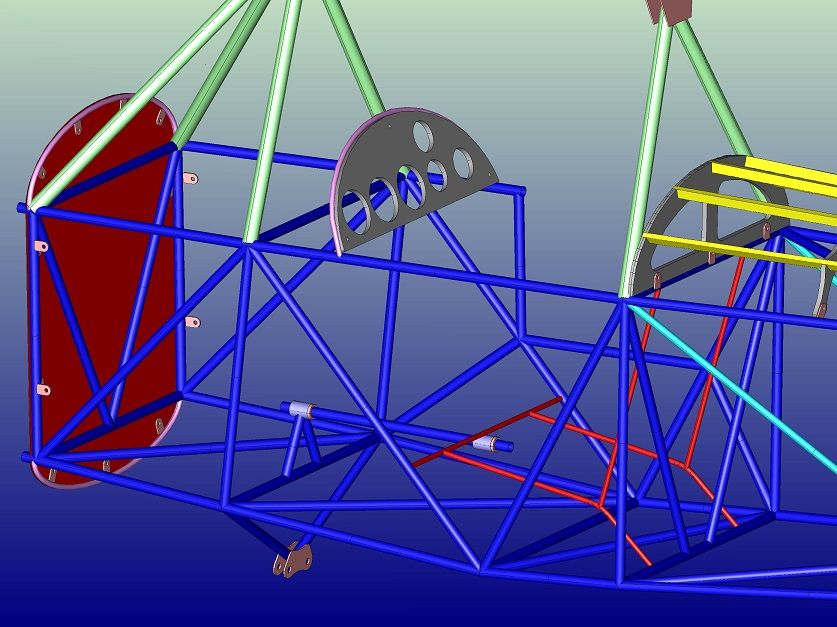 Если центроплан будет зашиваться только тканью, я бы поставил ещё "белую" трубочку. Пролёт большой и поперечная труба, под весом пилота будет  перемещаться. Подшитая к трубе ткань, этого не позволит. Да и фанера то же  🙂