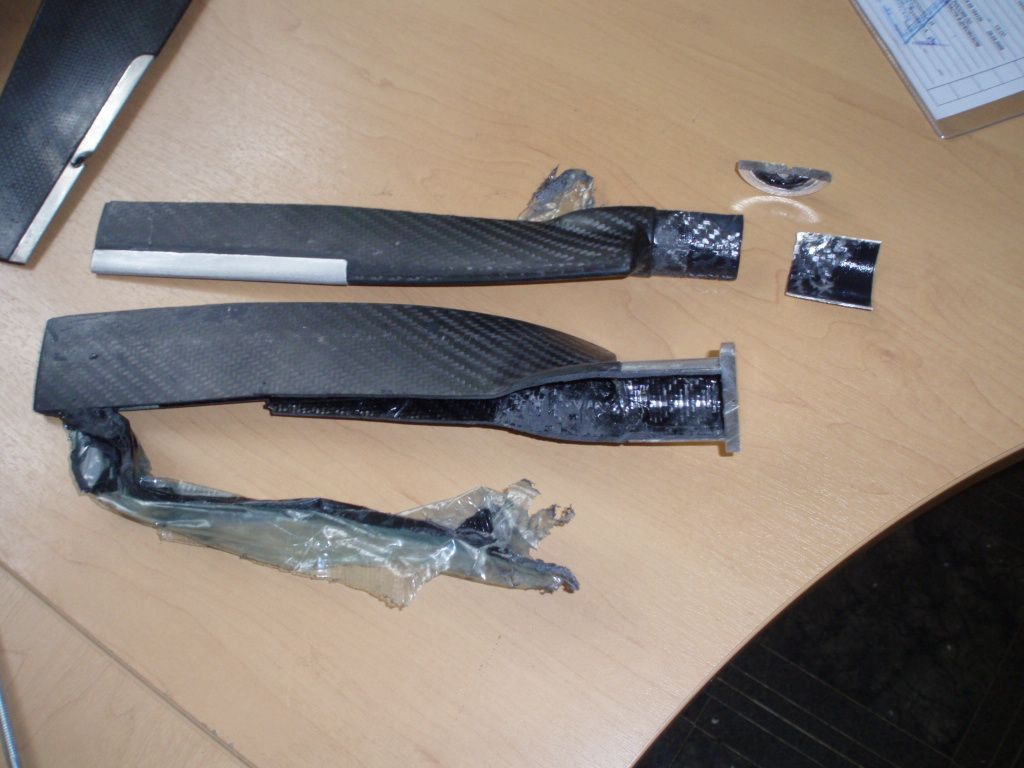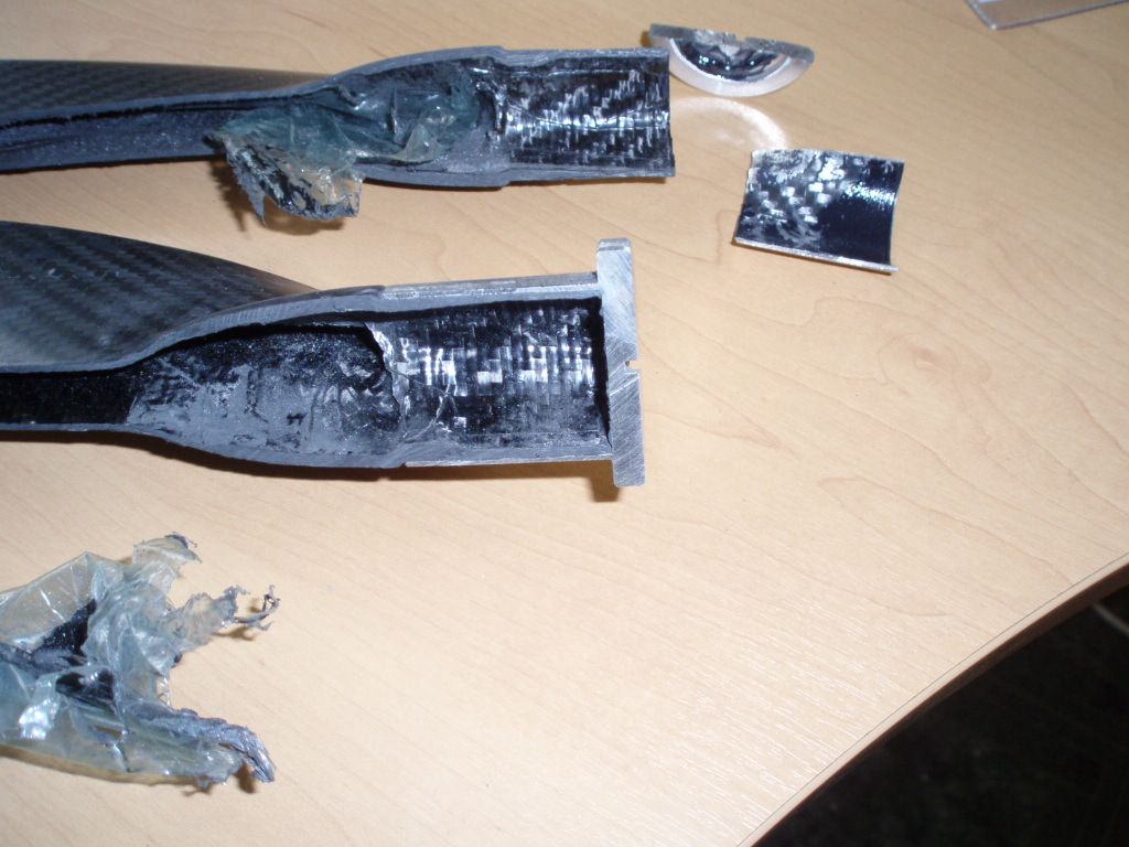 Причиной вскрытия стали несколько факторов. Один из них - довольно большой разброс в весе лопаток - от 123 грамм до более 150 грамм. Если формовка лопатки выполнялась правильно(соблюдение технологической карты, количество слоёв и размеров ткани и смолы), то такого разброса в весе быть не должно.