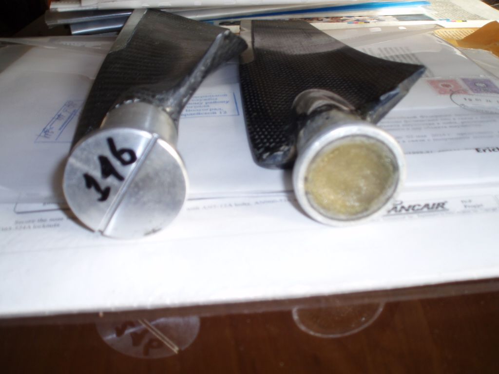 Второе - заделка "стакана" крепления лопатки - на вид на новых лопатках он просто вклеен в уже формованную лопатку, а должен быть в формован так, что-бы лопатка не "выскочила" из него от центробежной силы. Когда мы вскрыли новую лопатку, то стенку "стакана" просто руками от длили от самой лопатки... К тому-же они легко отломились от "донышка стакана", так как были очень тонкие и "подрезаны" резцом при их изготовлении. На этом фото показано как правильно "заделать" крепёжный стакан в лопатку: