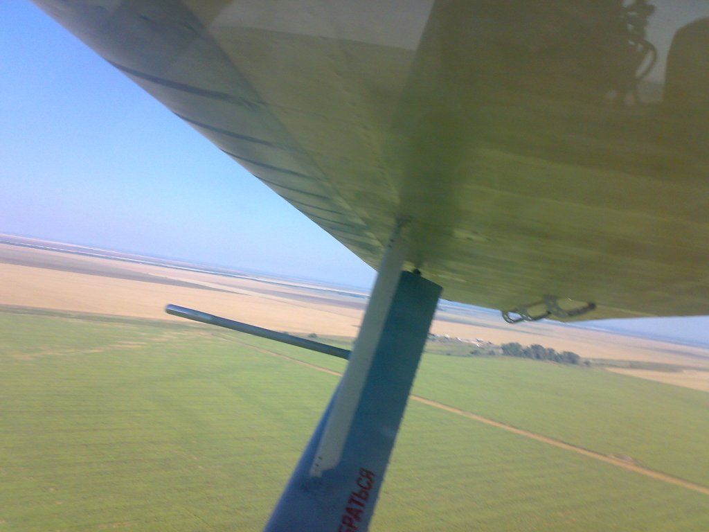На снимке ясно видно,что ткань простирается от лонжерона,почти до половины ширины "носика"крыла...Ткани приклеены к каркасу АК20...