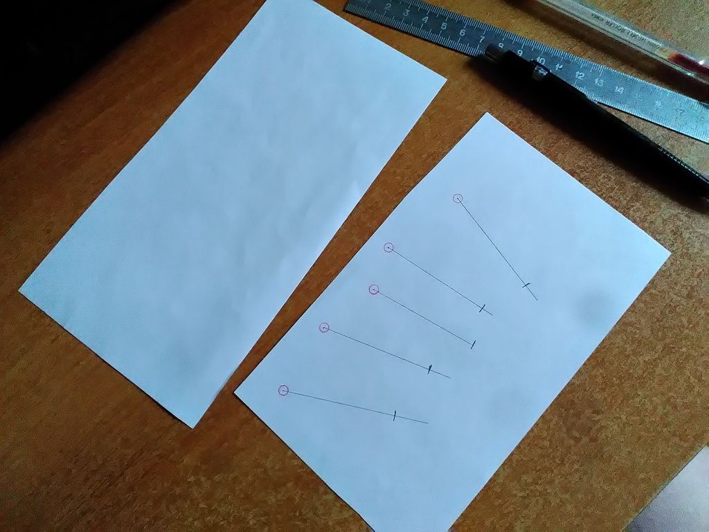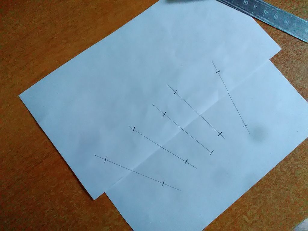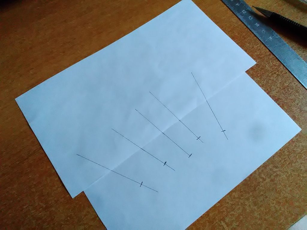 Сначала провожу линии через центры существующих отверстий в сторону которая не будет закрыта листом без отверстий.