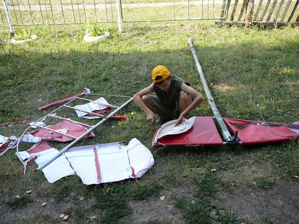 Сначала я тоже думал не показывать "потраха",что поделаешь,лучше горькая правда.Я и сам знаю что не все "блеск".А размах 9,68м,площадь 11,6. А по поводу молодежи,ей плевать на самолеты.Тем более что я летаю уже с 1987года,сначала мотодельта с Планетой и крылом Славутич-ут. потом Вихри и Бураны и т.д.У нас привыкли что кто то летает над их головами,никого не удивишь.