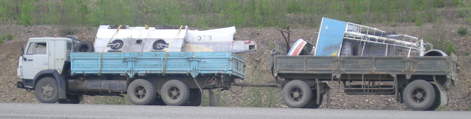 Ведь что собственно есть основа эффективности аммортизации автомобиля? Это разница между массами колеблющихся и неколеблющихся частей. Вес самой конструкции трeилера( без колеблющихся колес) намного превышает вес самолета. А сама подвеска расчитана на общую ГРУЖЕНУЮ массу, 20-30 тонн.