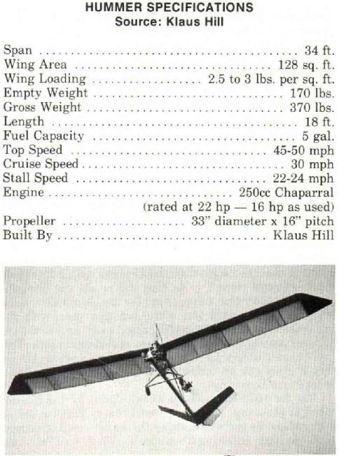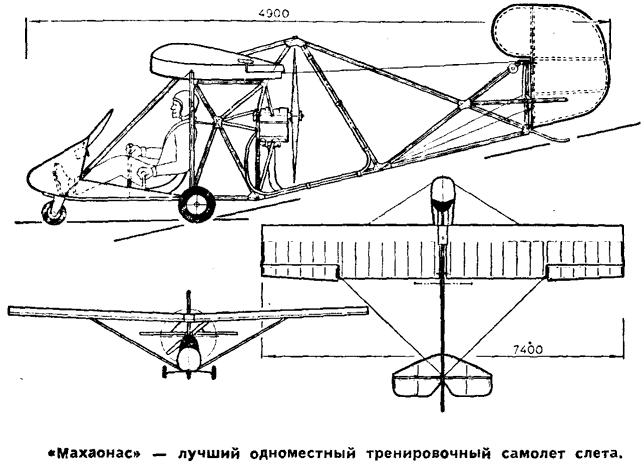 Махаонас. Вес 82 (88) кг. летал на 15 л.с. максимальная скорость 110 км/ч , скороподъемность 2 м/с