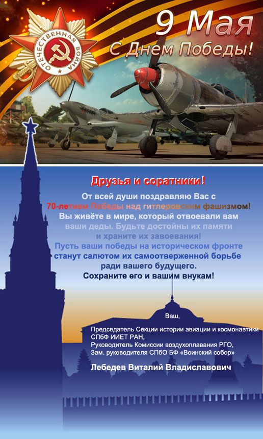 А он действительно добрый. Поэтому спешу Вам сообщить, что благодаря каждой странице статей и книг, пропитанных каплями пота вашего каждодневного и упорного труда на благо авиации, каждому вашему слову в защиту нашей истории, в этом мире действительно что-то начинает меняться в лучшую сторону.