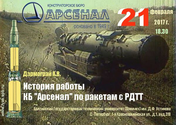 "Историю работы КБ "Арсенал" по ракетам с РДТТ".